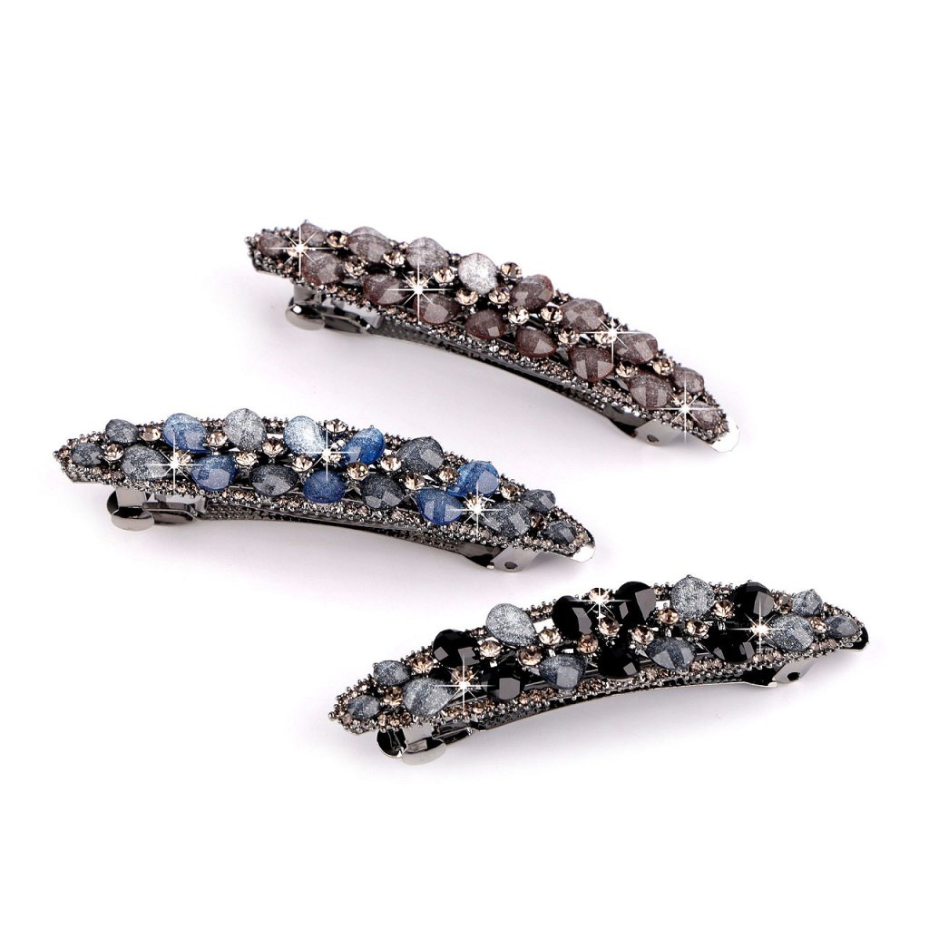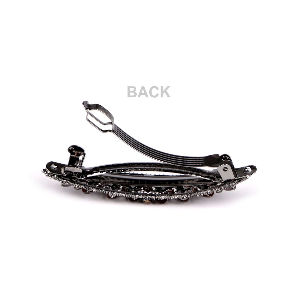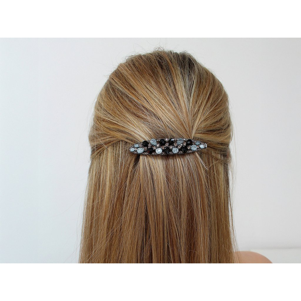 Francouzská spona zdobená akrylátovými broušenými kameny luxusně ozdobí váš účes. Má nádherný lesk, který přitahuje pozornost. Luxusně ozdobí slavnostní účes. Ať už máte jemné prameny nebo husté lokny, touto sponou snadno sepnete vlasy do copu nebo vytvoříte elegantní drdol, který bude vypadat, jako kdyby ho vytvořil profesionál. Spona má velmi kvalitní celokovové provedení. Zacvakávací mechanismus je pevný.