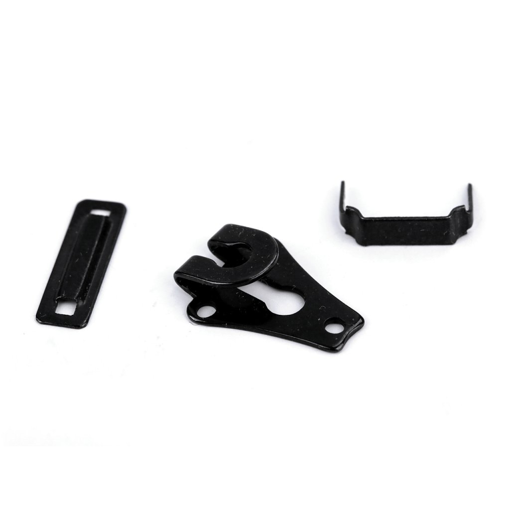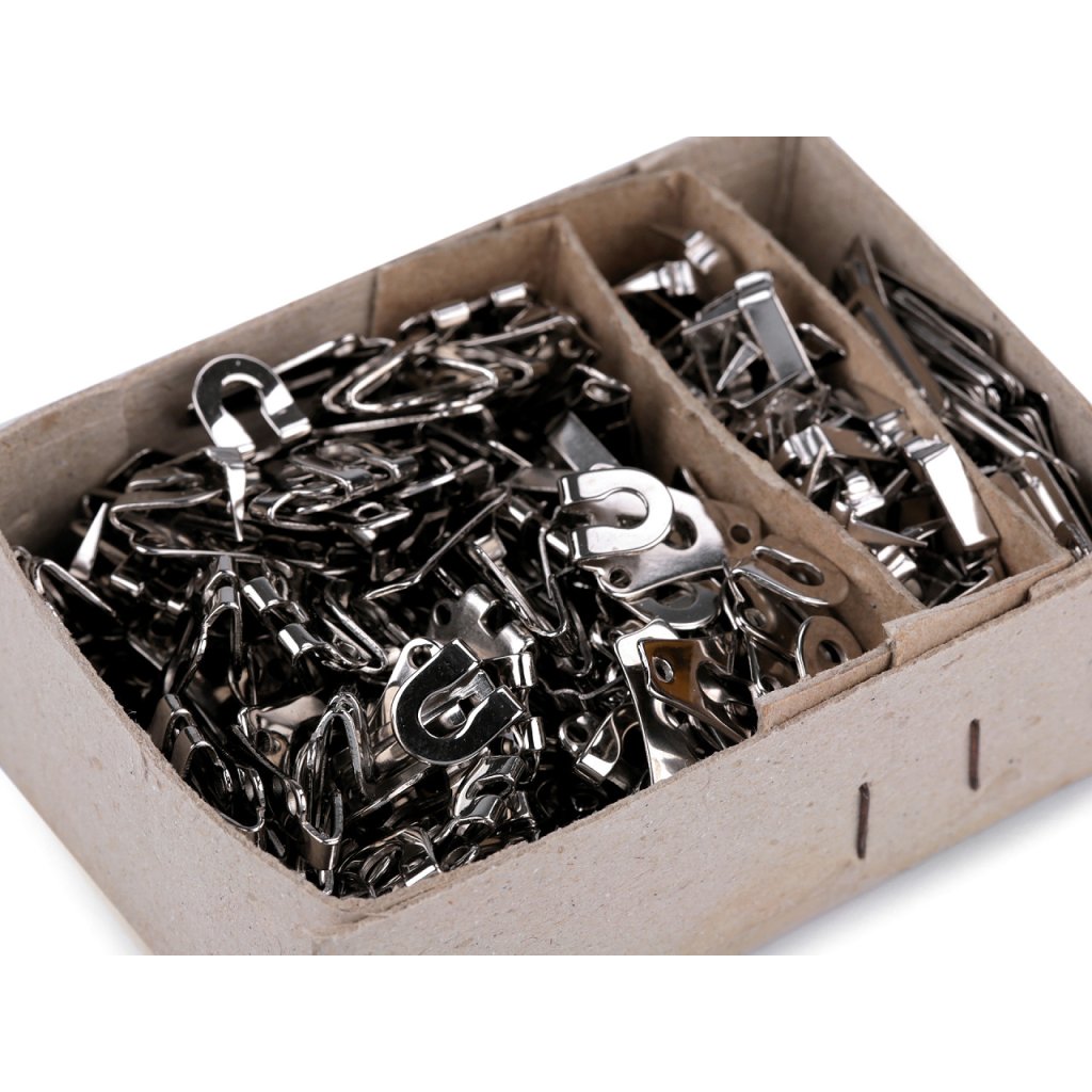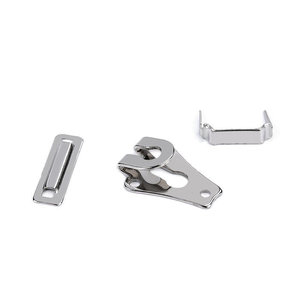 Kovový háček se skládá ze tří částí. Háček se používá jako zapínání u oděvních výrobků, například pánských a dámských kalhot nebo sukní. Můžete ho použít i na trička, vesty či mikiny.