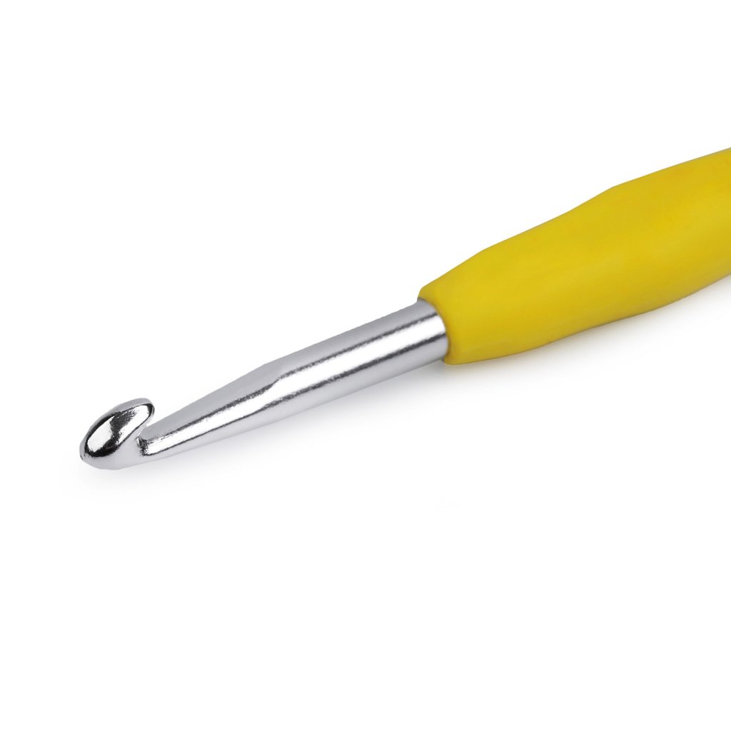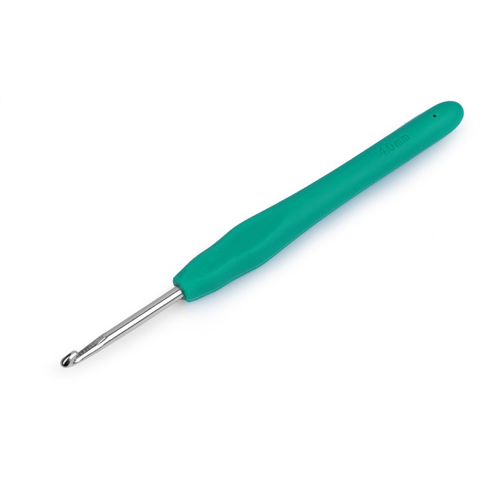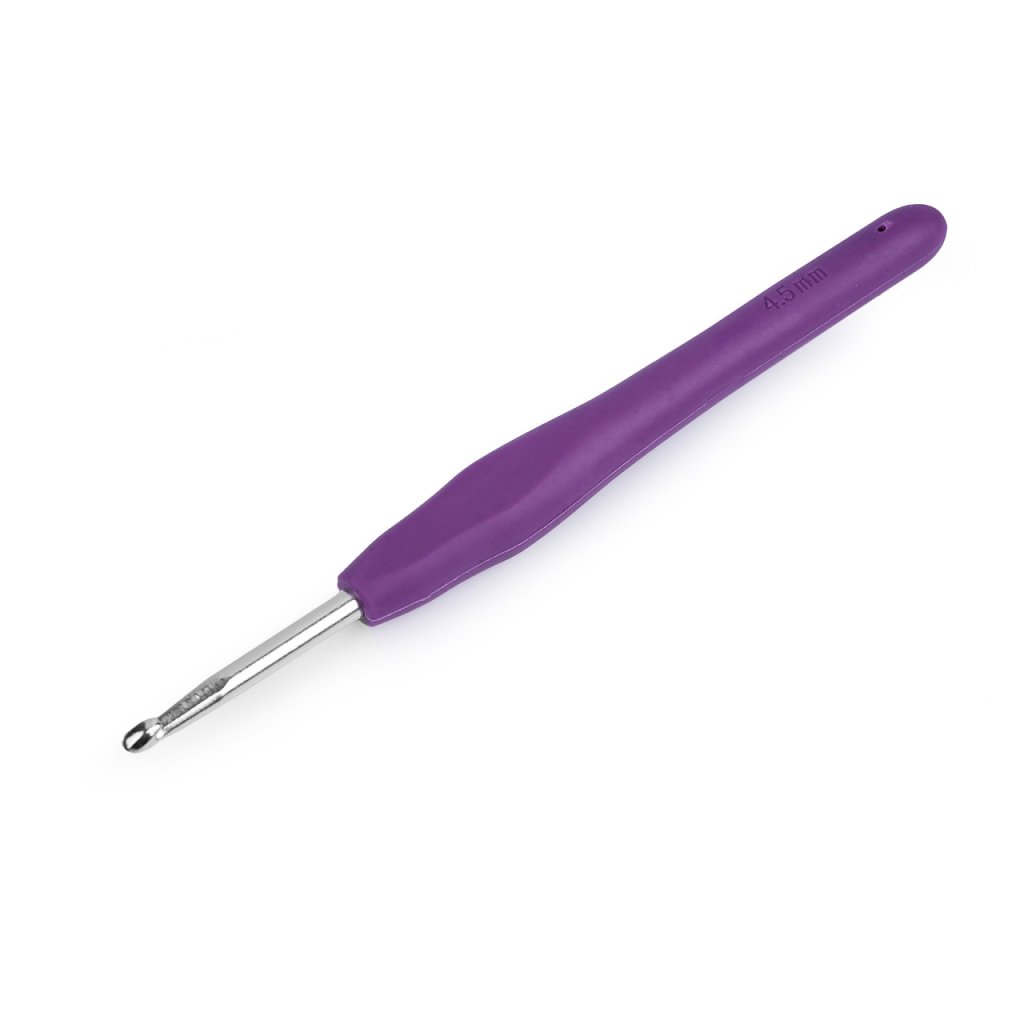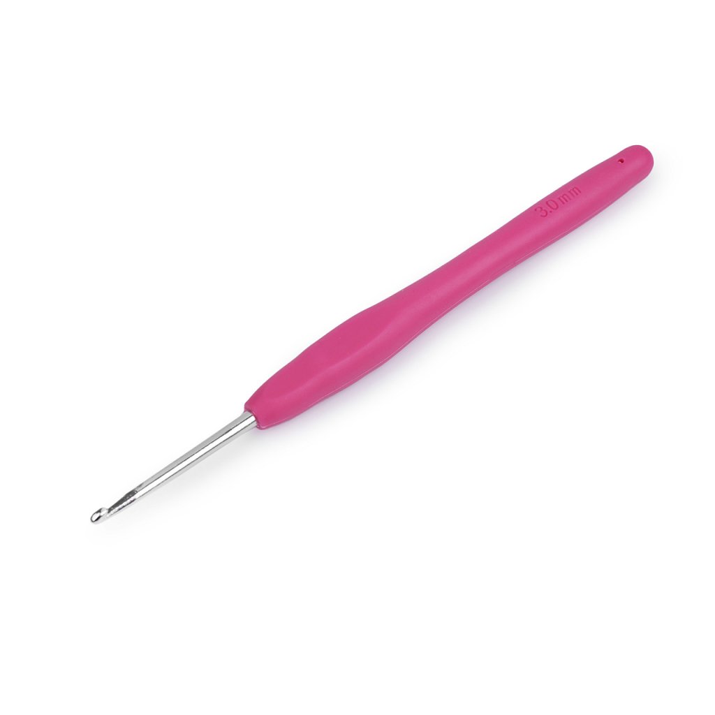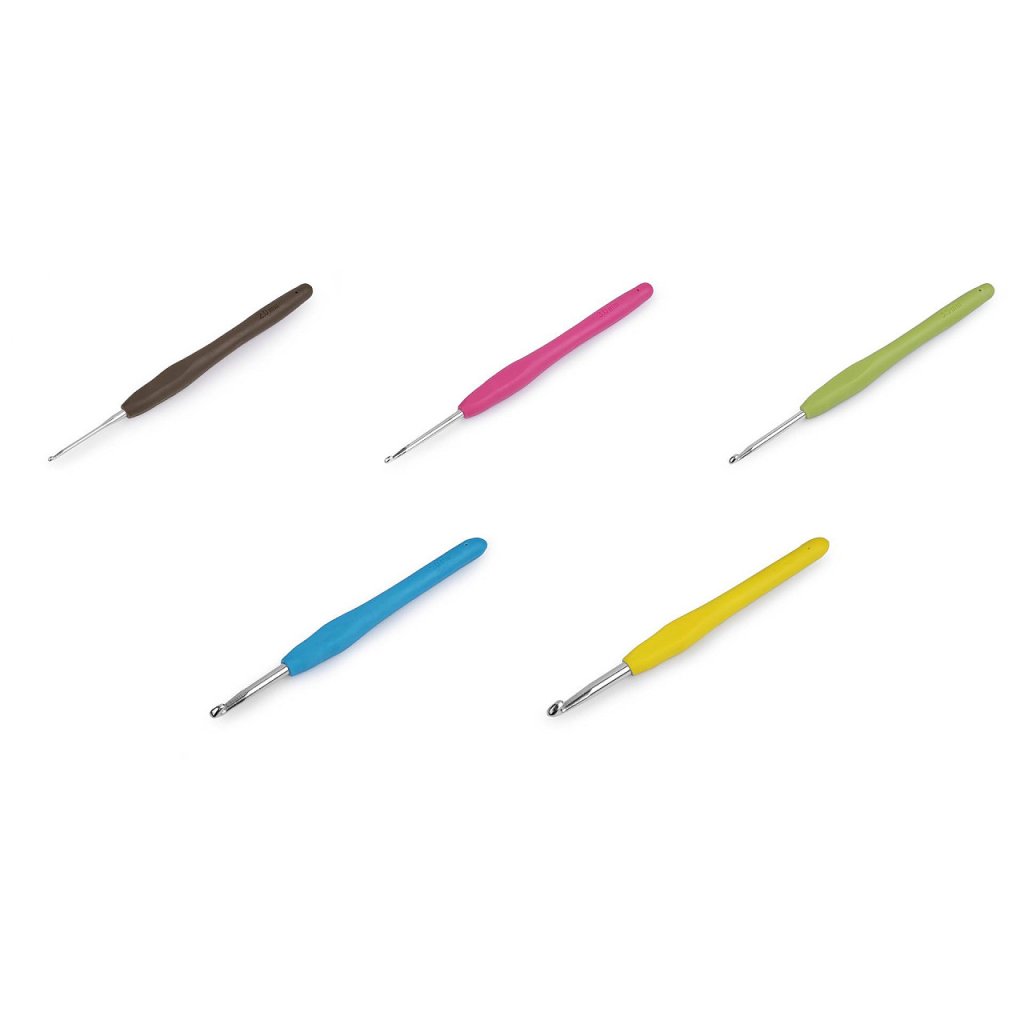 Háček na háčkování se díky silikonové rukojeti pohodlně drží v ruce.