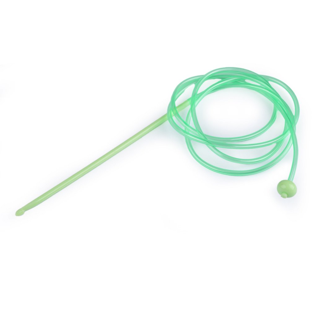Plastový háček s bužírkou je určený na tuniské háčkování, které je silnější a méně pružnější než háčkování klasické. Díky těmto vlastnostem je tato technika vhodná na háčkování dek a zimních úpletů.