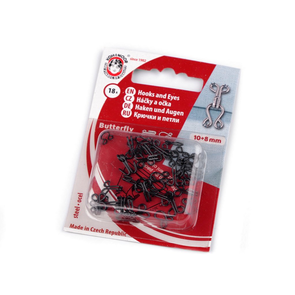 Zapínání na očko a háček je vyrobeno z kvalitního kovu. Používá se na oděvy a připevňuje se přišitím. Jedná se o kvalitní český výrobek.