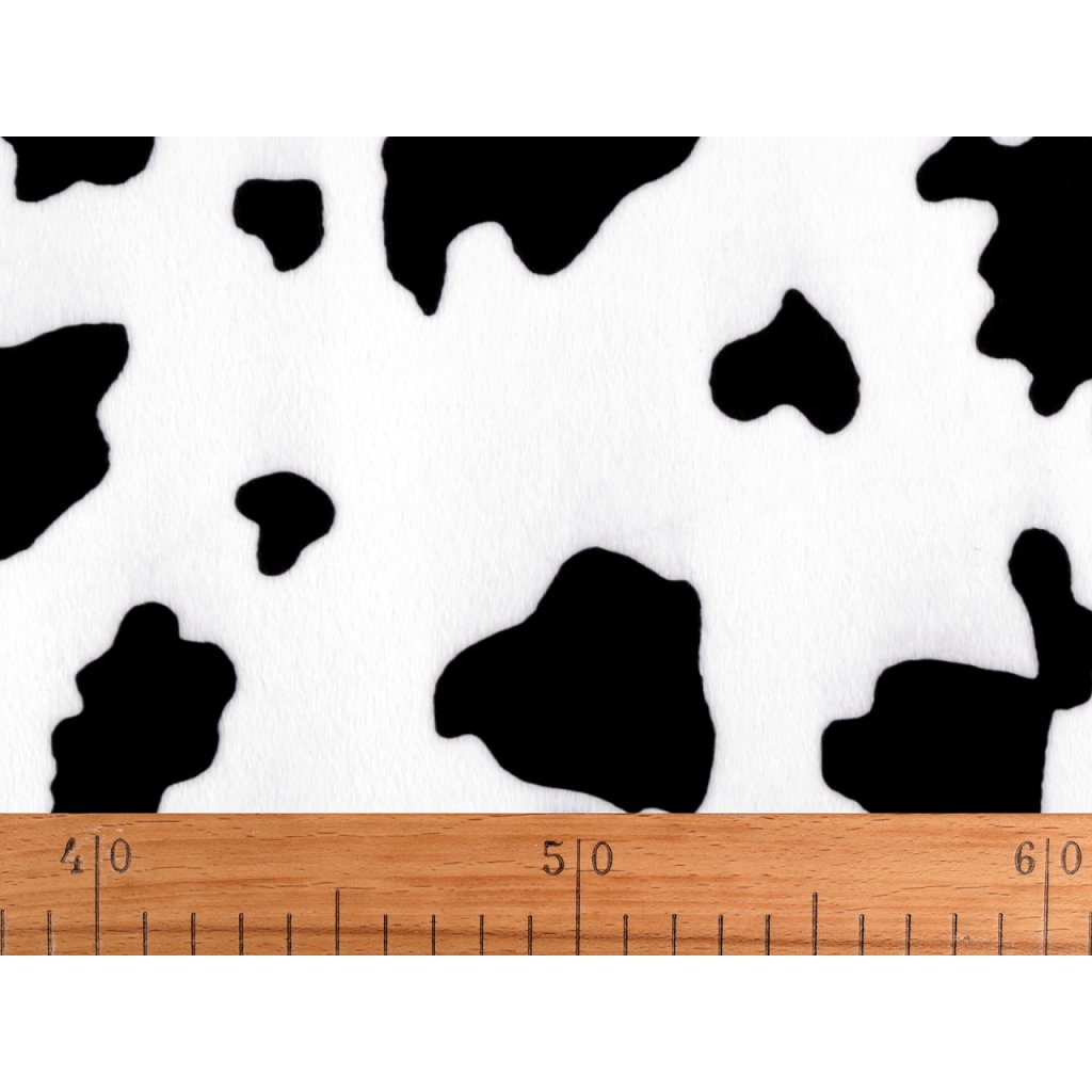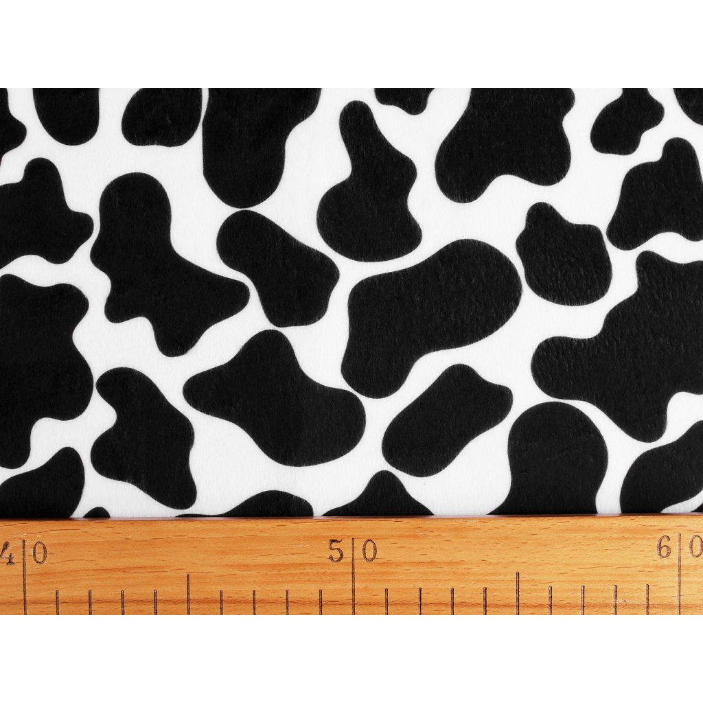 Imitace hovězí kůže je měkká, příjemná na dotek, lehce pruží do šířky a má krátký chlup. Využijete ji na šití bytových doplňků (polštářů, přehozů apod.) i kabátků či vest. Hodí se také na karnevalové kostýmy.