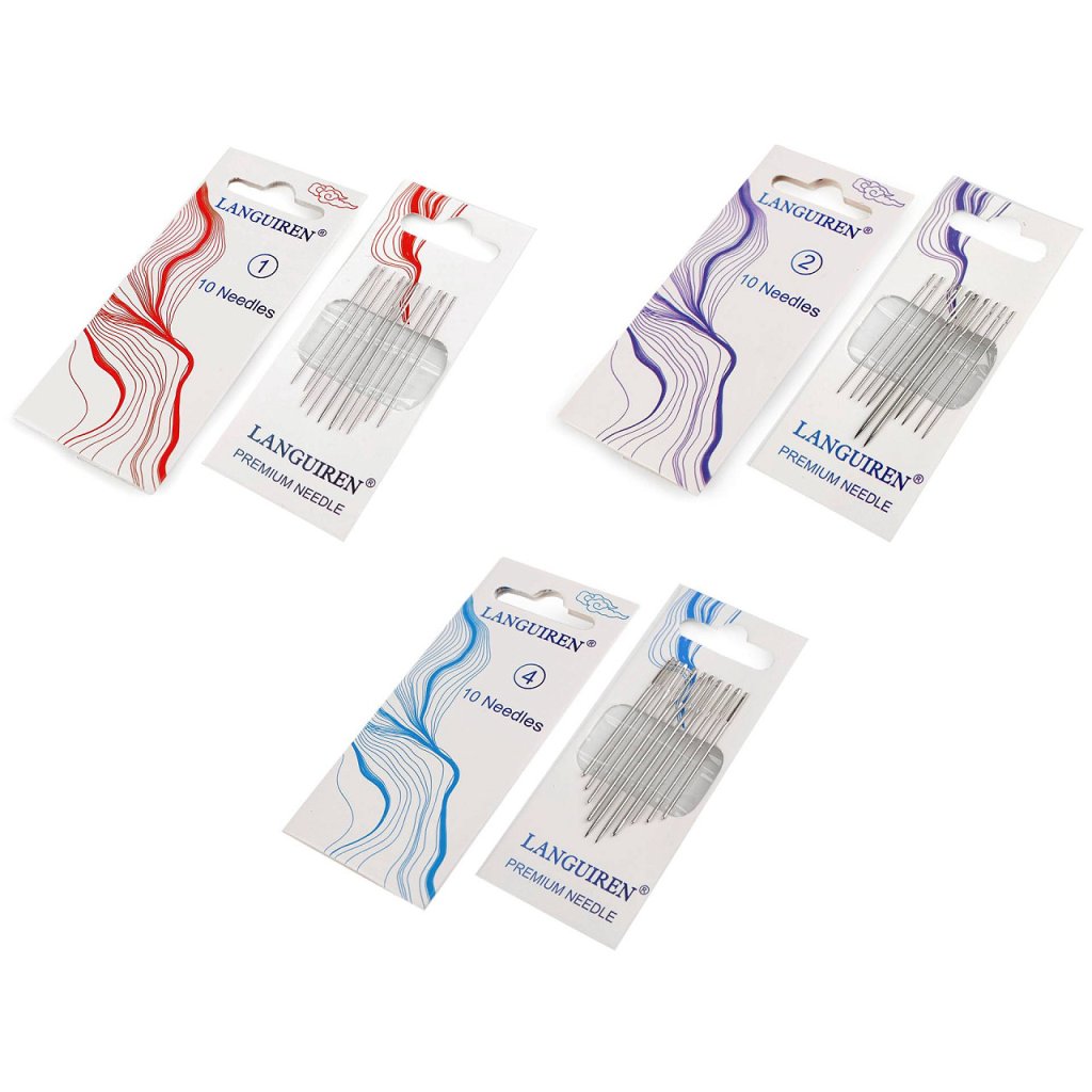 Krátké nerezové jehly jsou určené pro ruční šití, zašívání, vyšívání a látání. Vynikají prémiovou kvalitou. V sadě najdete i jehly s většími oušky.