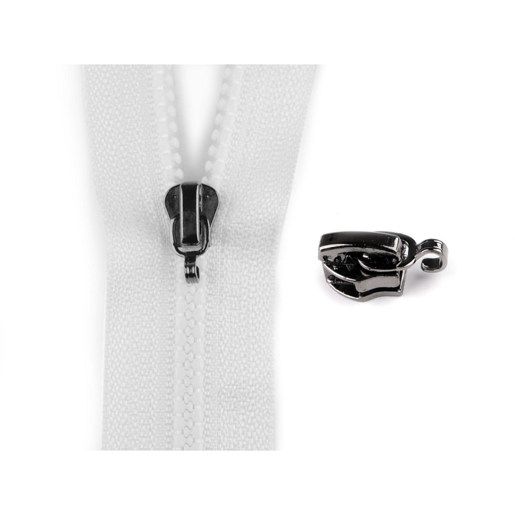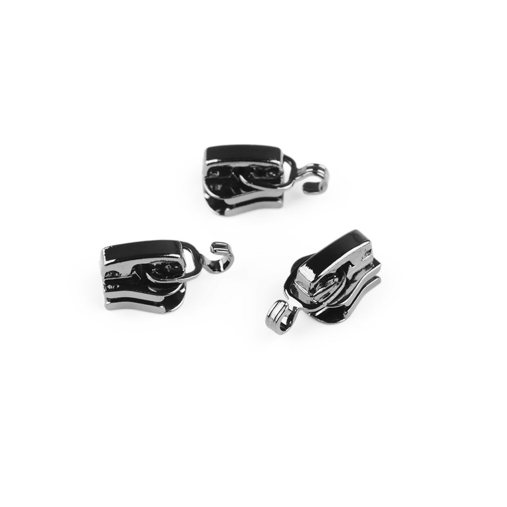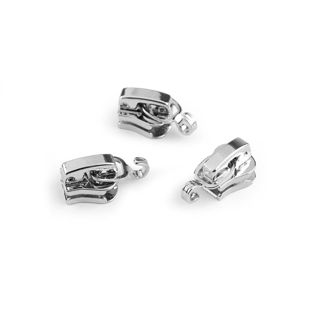 Kovový jezdec má velikost vhodnou na dětské oděvy a doplňky. Je určený ke kostěným zipům, které u nás najdete pod kódem 900943. Jezdec je bez taháčku, má jen háček, na který si připevníte taháček dle vlastního vkusu či potřeby a pomocí kleští (které u nás najdete pod kódem 070813 nebo 090983) zamáčknete.