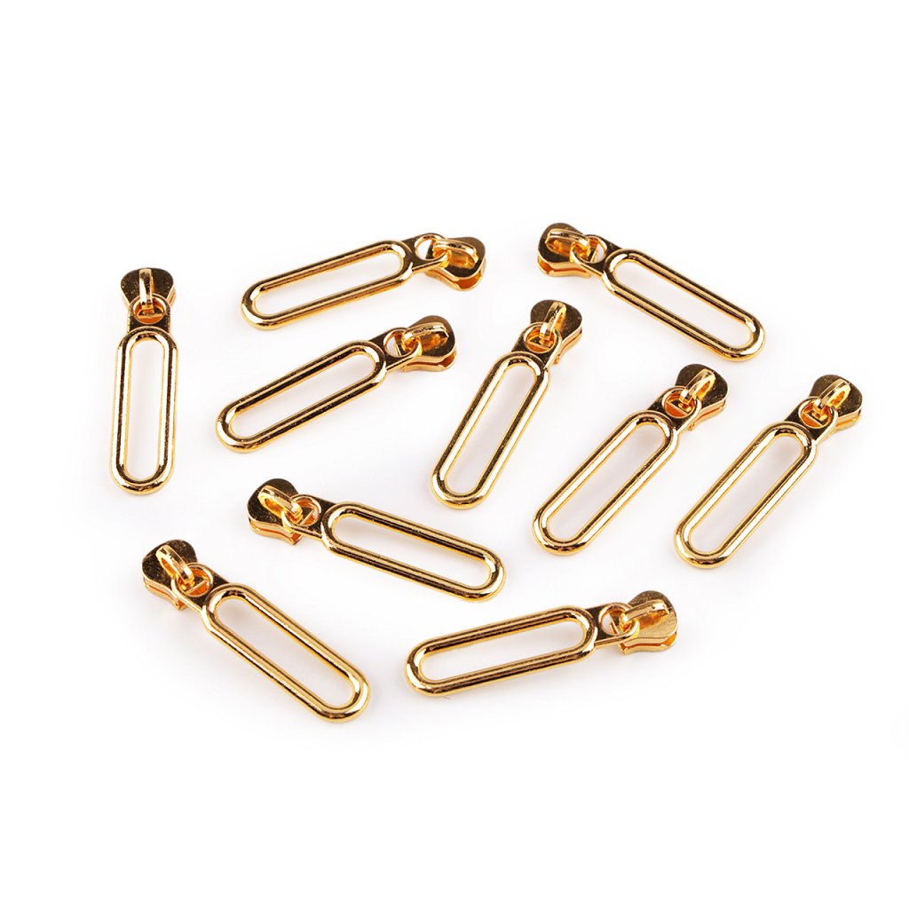 Kovový jezdec s velkým ozdobným taháčkem je určený ke kostěným zipům v metráži, které u nás najdete pod kódy 090848, 900945, 900949.