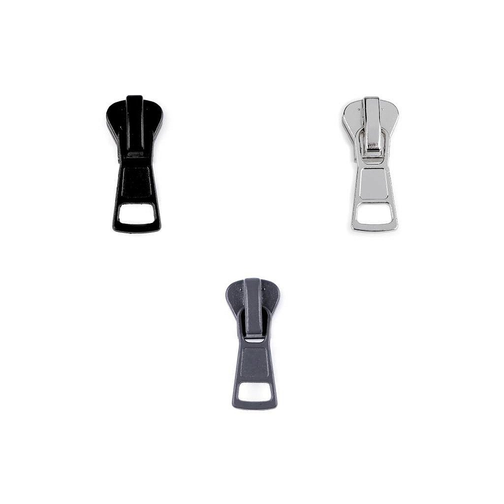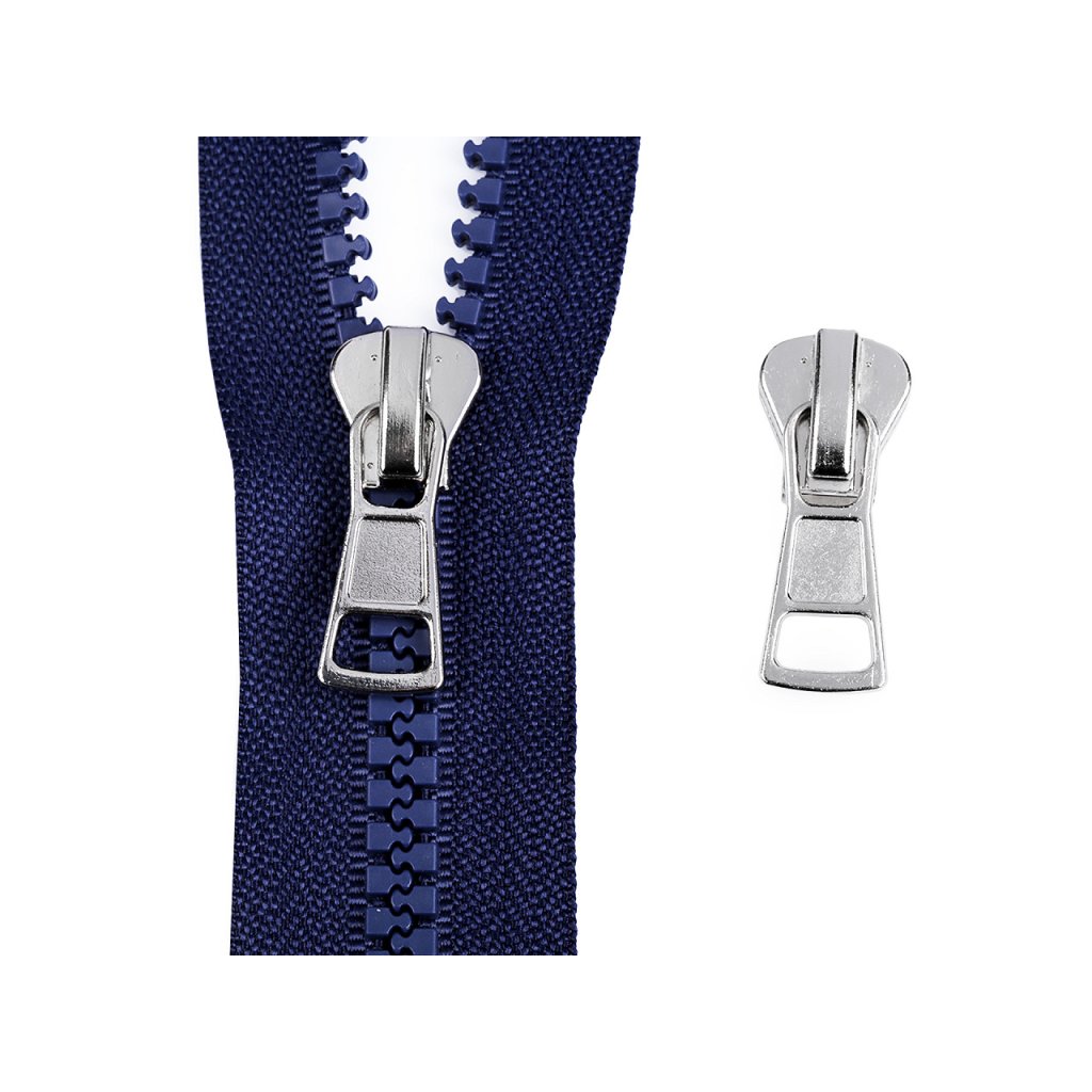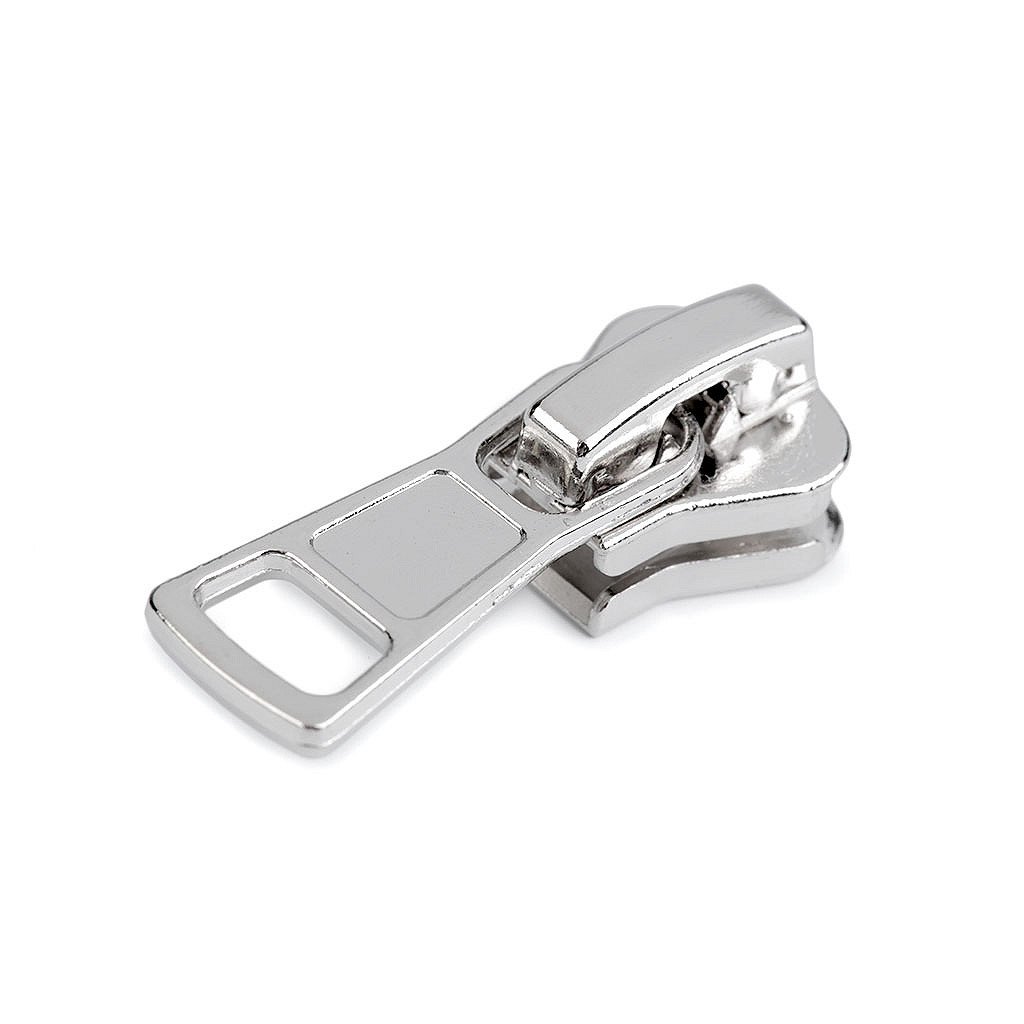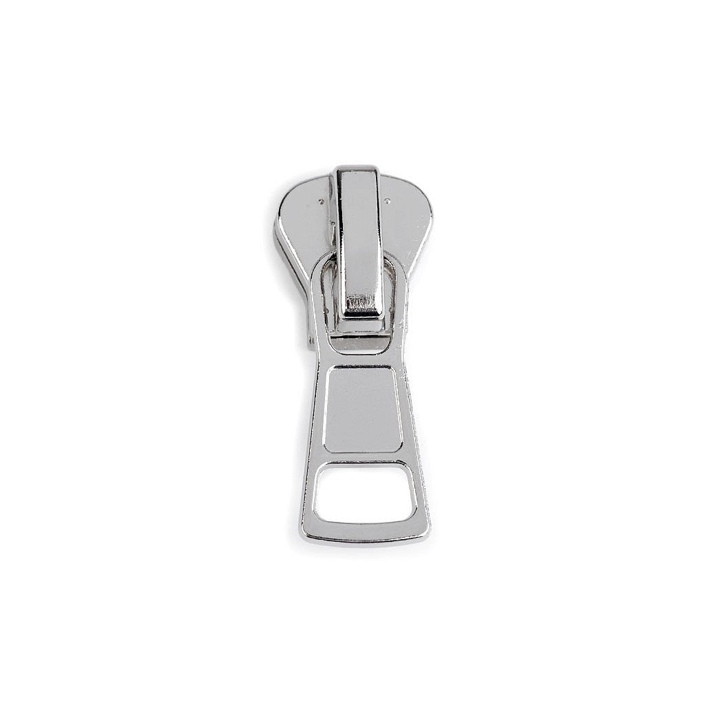 Kovový jezdec je určený ke kostěným zipům o šíři 8 mm v metráži, které najdete pod kódy 790306, 080729, 790837.