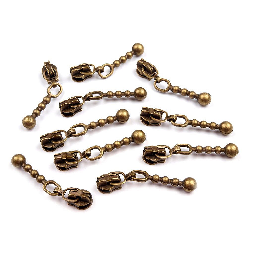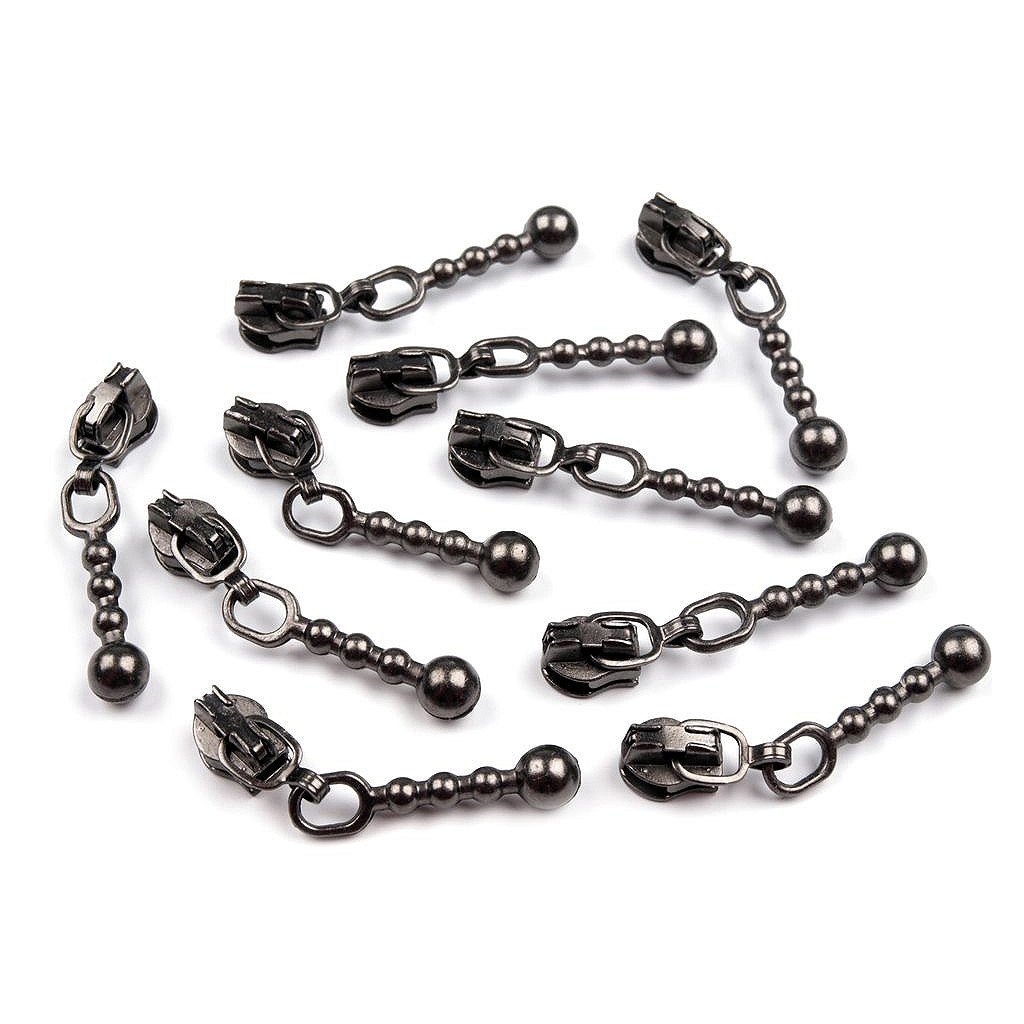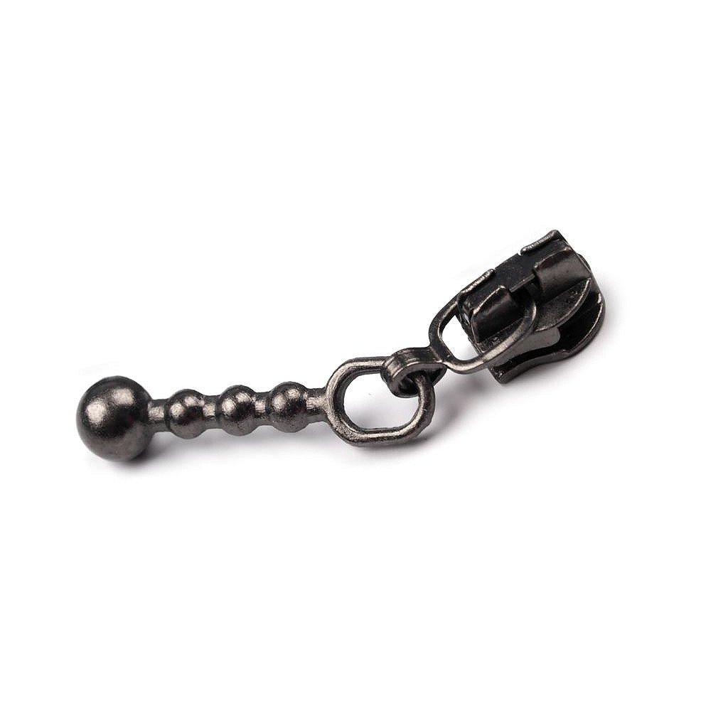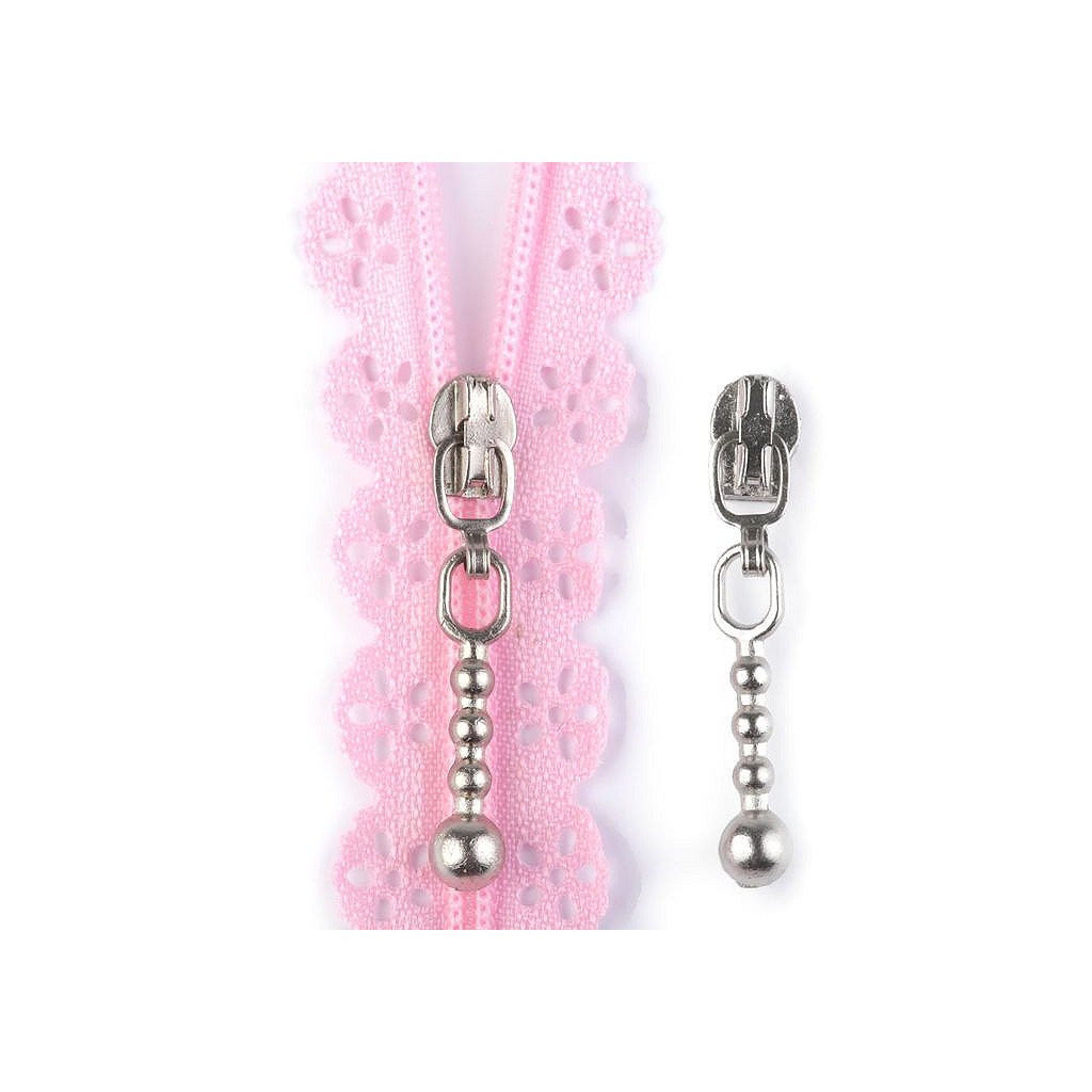 Kovový ozdobný jezdec má tvar tyčinky, kterou zakončuje kulička. Je s aretací, což znamená, že zdrhovadlo zůstává rozevřené pouze tolik, kolik si přejete. Jezdec je vhodný na metráž, kterou u nás najdete pod kódem 050716, 750678, 900594, 560600.