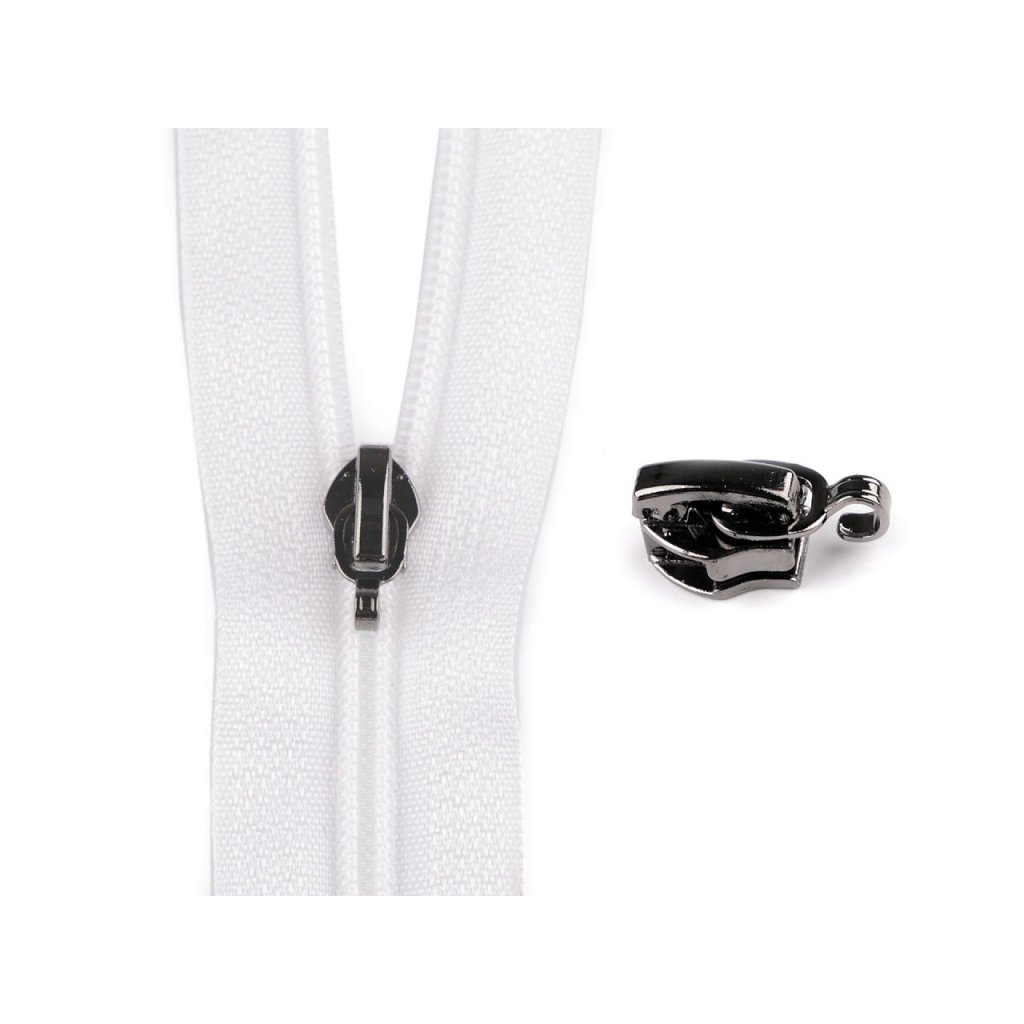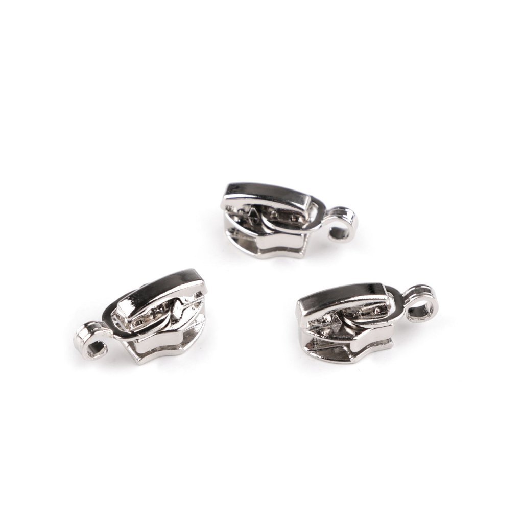 Kovový jezdec je určený ke spirálovým zipům o šíři 5 mm, které u nás najdete pod kódy 740911, 790305, 750503. Je bez taháčku, má jen háček, na který si připevníte taháček dle vlastního vkusu či potřeby a pomocí kleští (které u nás najdete pod kódem 070813 nebo 090983) zamáčknete.