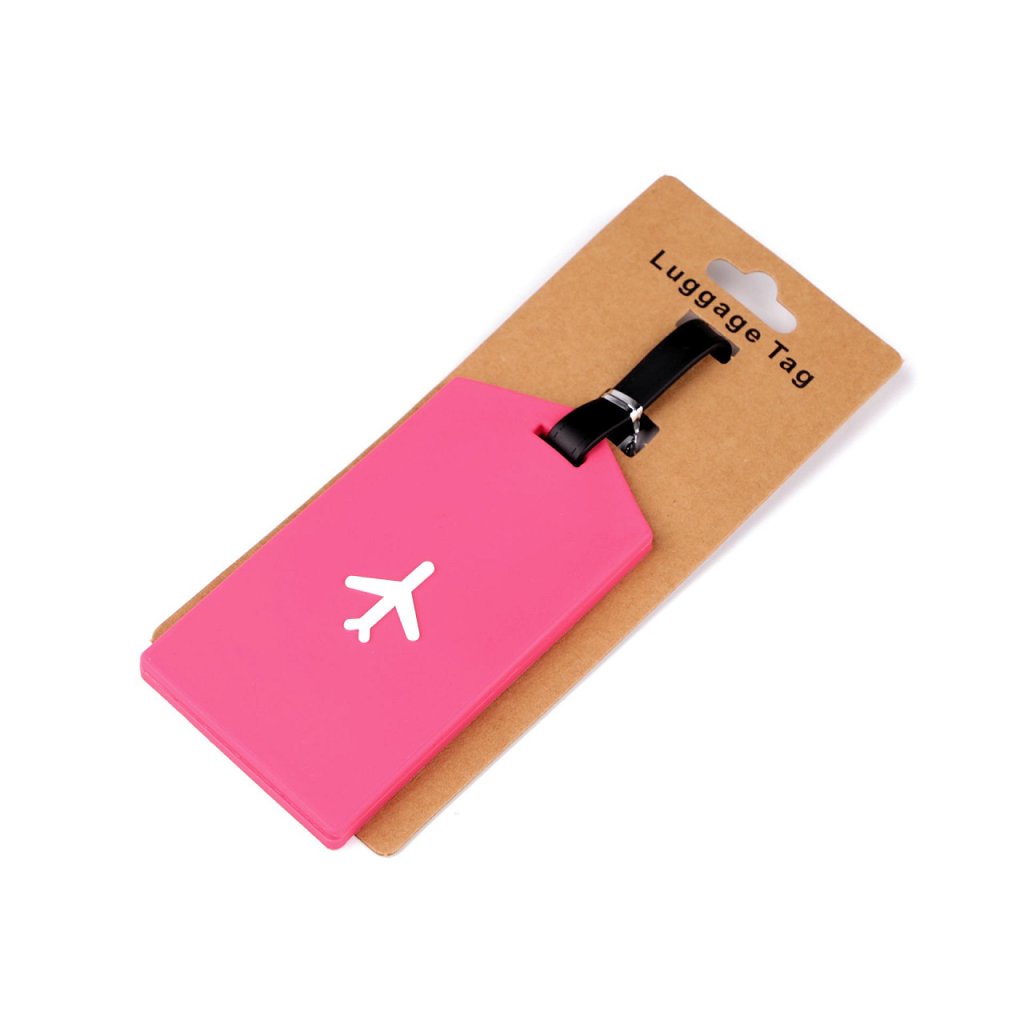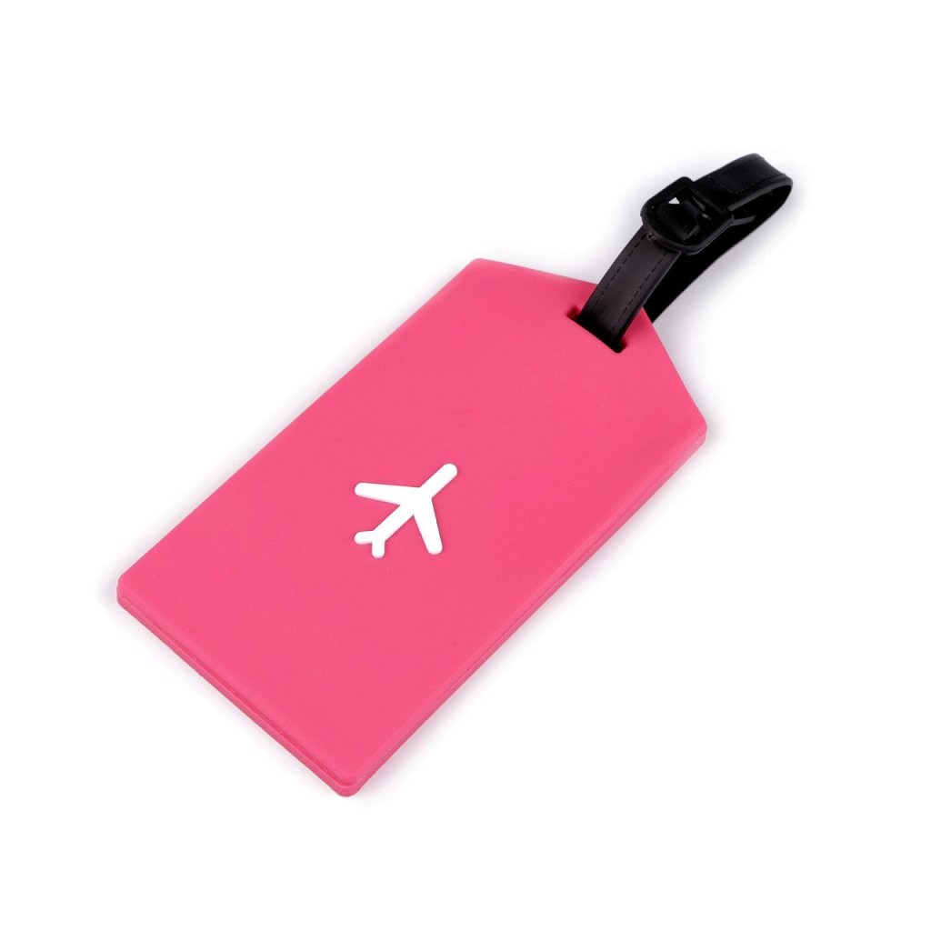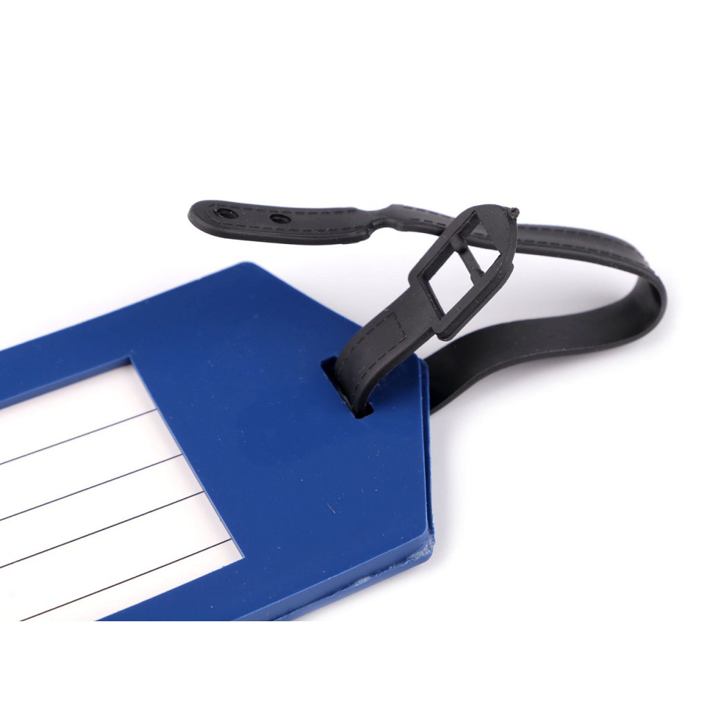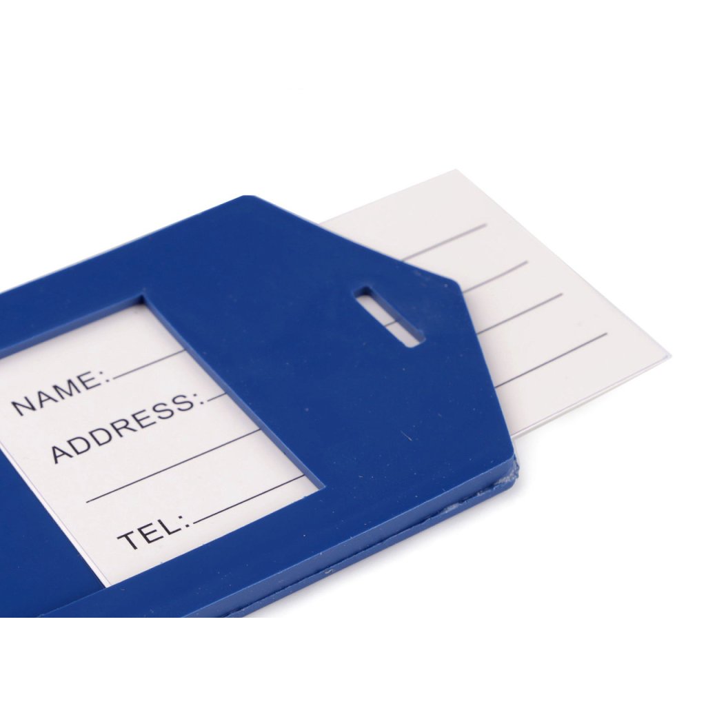 Jmenovka na kufr je na jedné straně ozdobená motivem letadla. Usnadní hledání vašeho kufru ve velkém množství zavazadel. Je silikonová, ohebná. Do příslušných kolonek, které jsou umístěné na druhé straně, můžete napsat základní údaje jako je jméno, adresa, telefon, popř. e-mail. Součástí visačky je i pásek na přichycení. Kartička na vepsání údajů se dá vysunout, je chráněná pevnou transparentní fólií. Rozměry psací části jsou 4,5 x 6,7 cm.