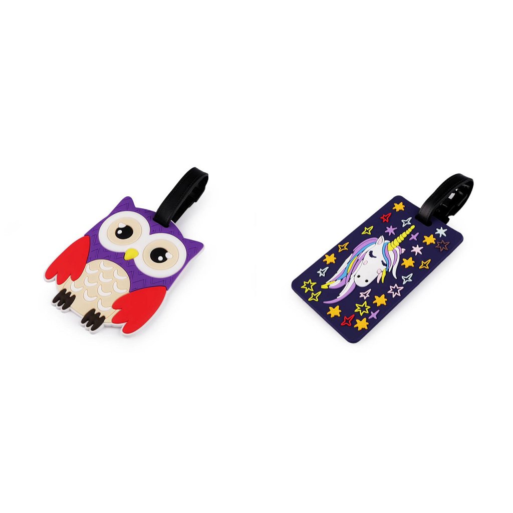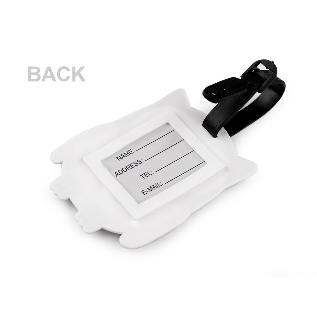 Jmenovka na kufr má na jedné straně výrazný barevný obrázek. Usnadní hledání vašeho kufru ve velkém množství zavazadel. Je silikonová, ohebná. Do příslušných kolonek, které jsou umístěné na druhé straně, můžete napsat základní údaje jako je jméno, adresa, telefon, popř. e-mail. Součástí visačky je i pásek na přichycení. Kartička na vepsání údajů se dá vysunout, je chráněná pevnou transparentní fólií. Rozměry psací části jsou 3,5 x 4,5 cm.