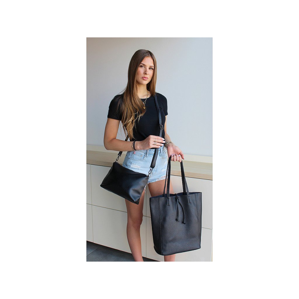 Velkou prostornou kabelku 2v1 si zamilujete pro její jednoduchý, elegantní a čistý design. Zavírá se na zavazovací šňůry. Ucha jsou vhodná k nošení v ruce i na rameni. Uvnitř kabelky najdete menší vkládací pouzdro, ze kterého můžete udělat menší crossbody kabelku. Velká kabelka nemá podšívku.