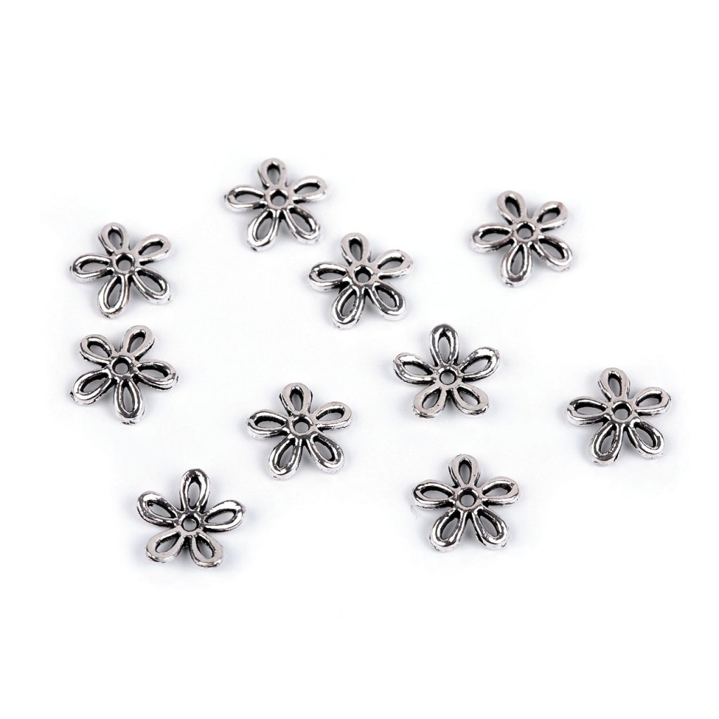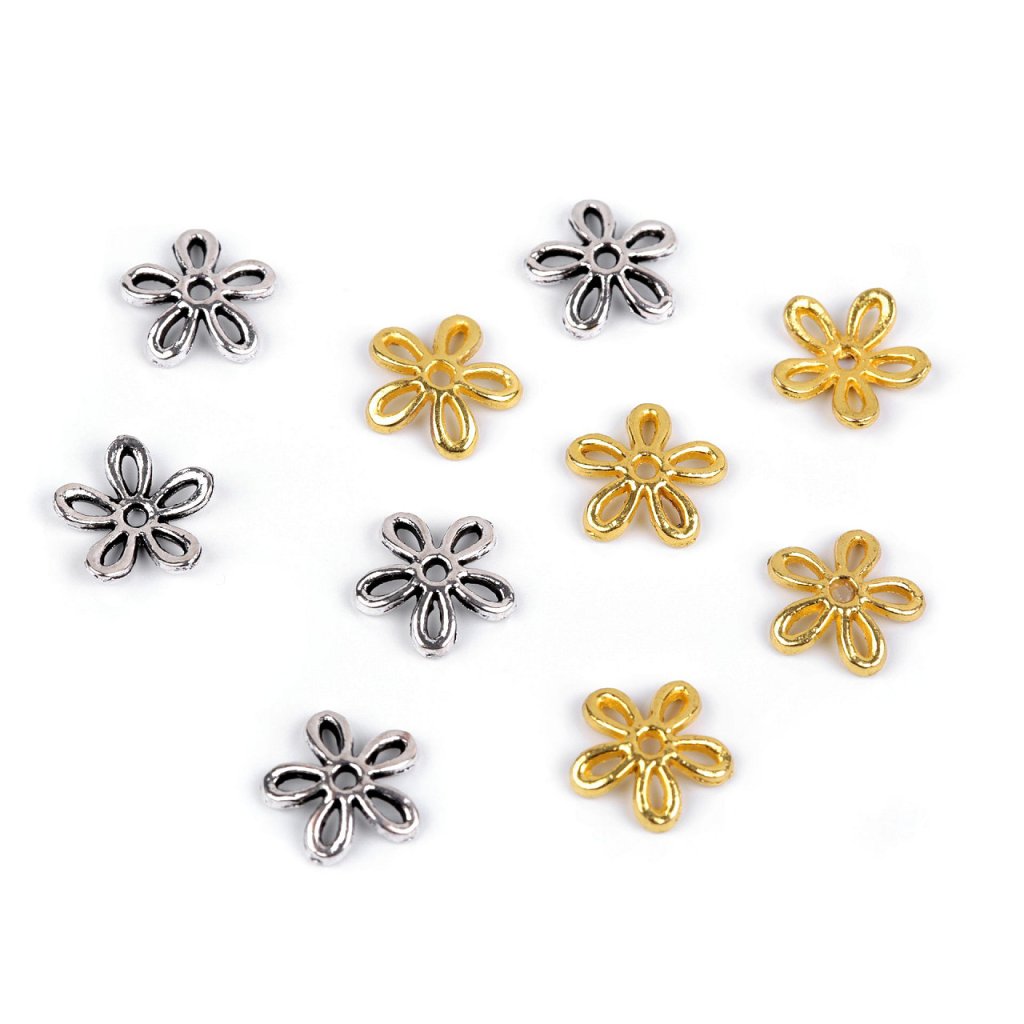 Kovový kaplík ve tvaru květiny můžete využít jako zajímavý a oživující prvek v široké škále výrobků. Je oblíbený např. na ozdobu hlaviček malých dekoračních víl a andělíčků.
