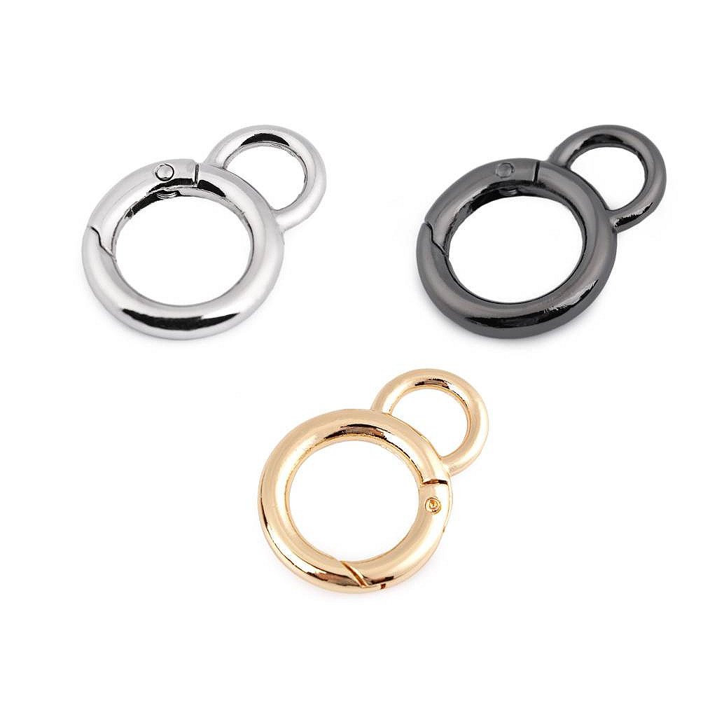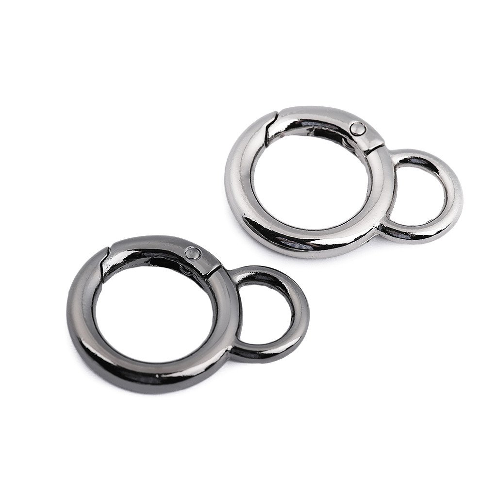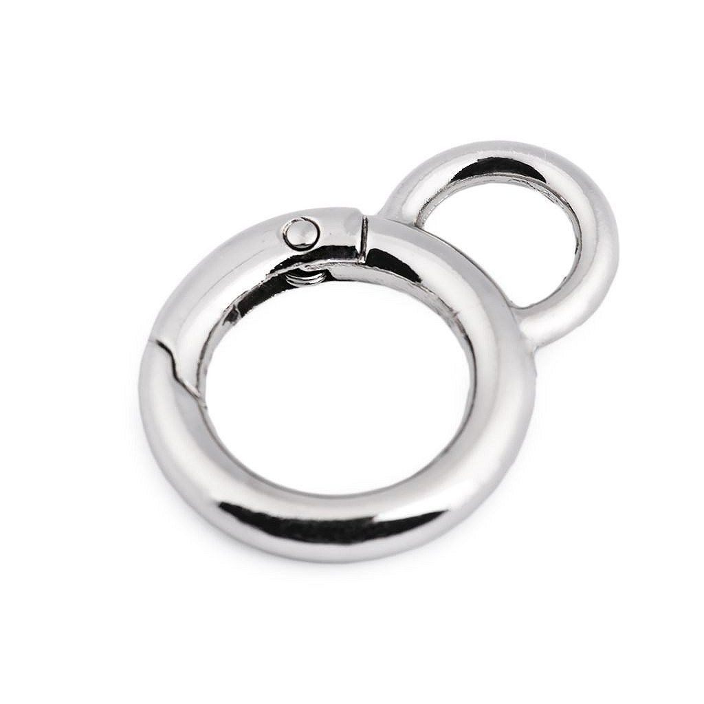 Kovová karabina ve tvaru kroužku se stane jednoduchým a efektním řešením, umožňující jednoduché sepnutí klíčenek a různých ozdob ke kabelkám, batohům, taškám apod.