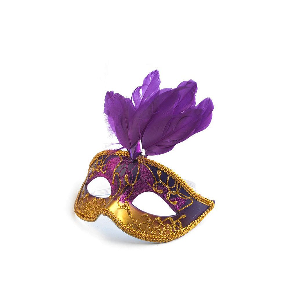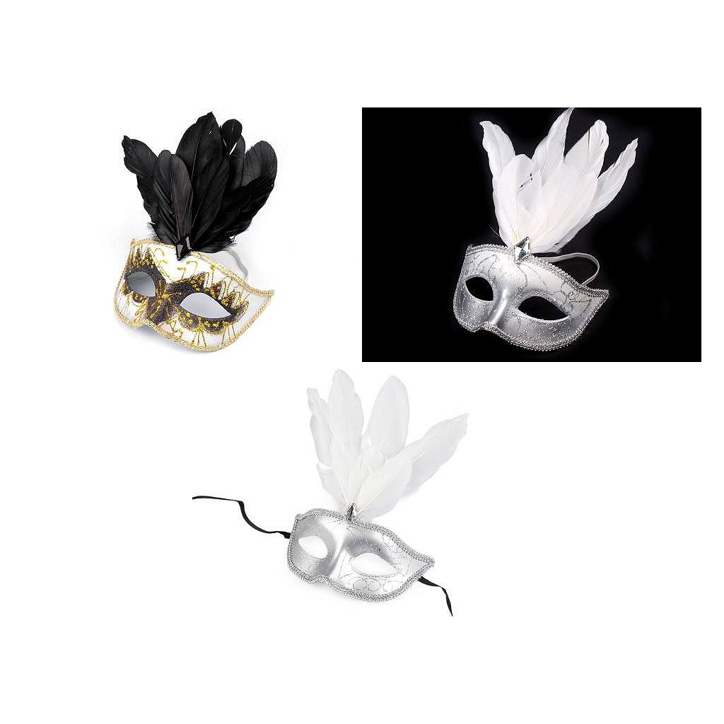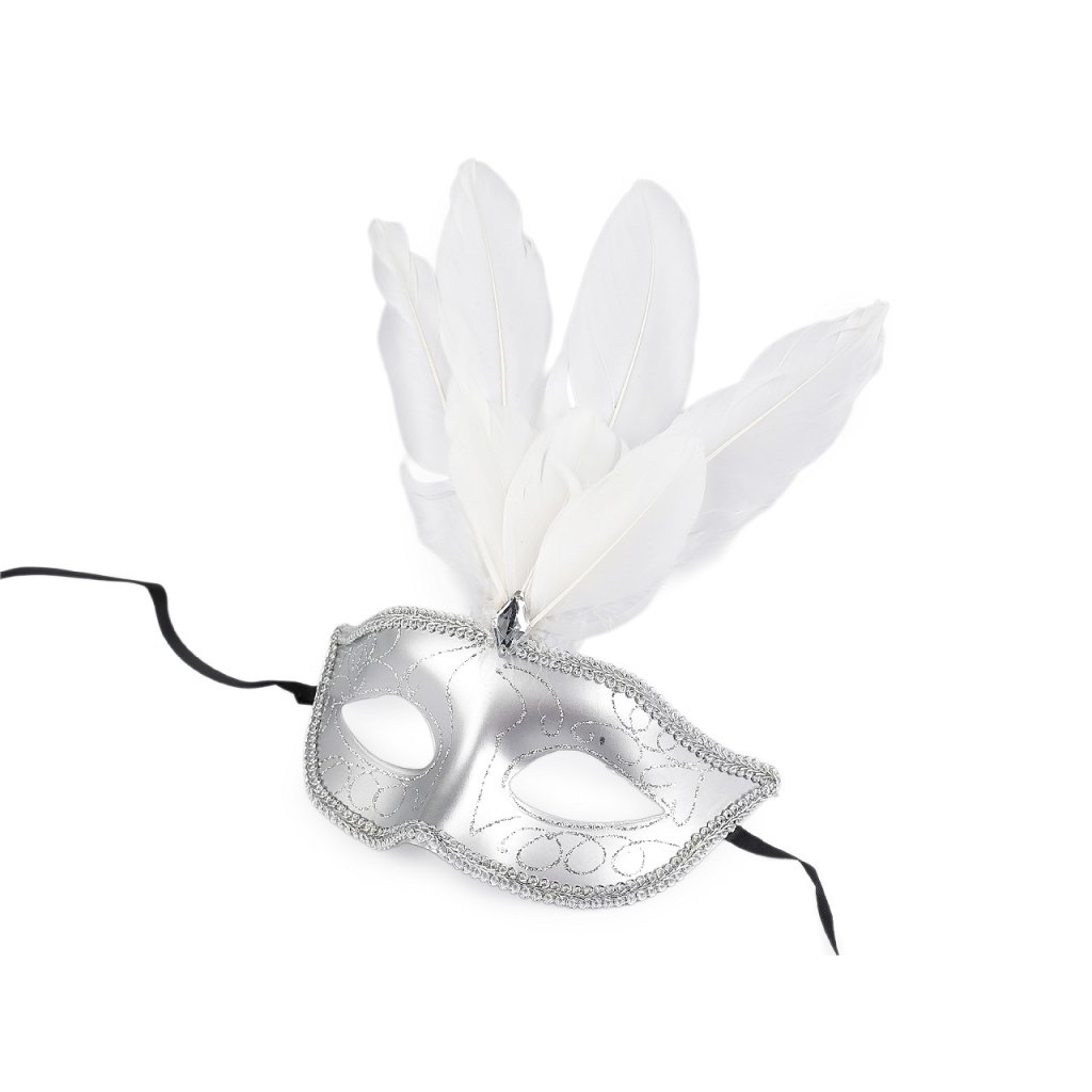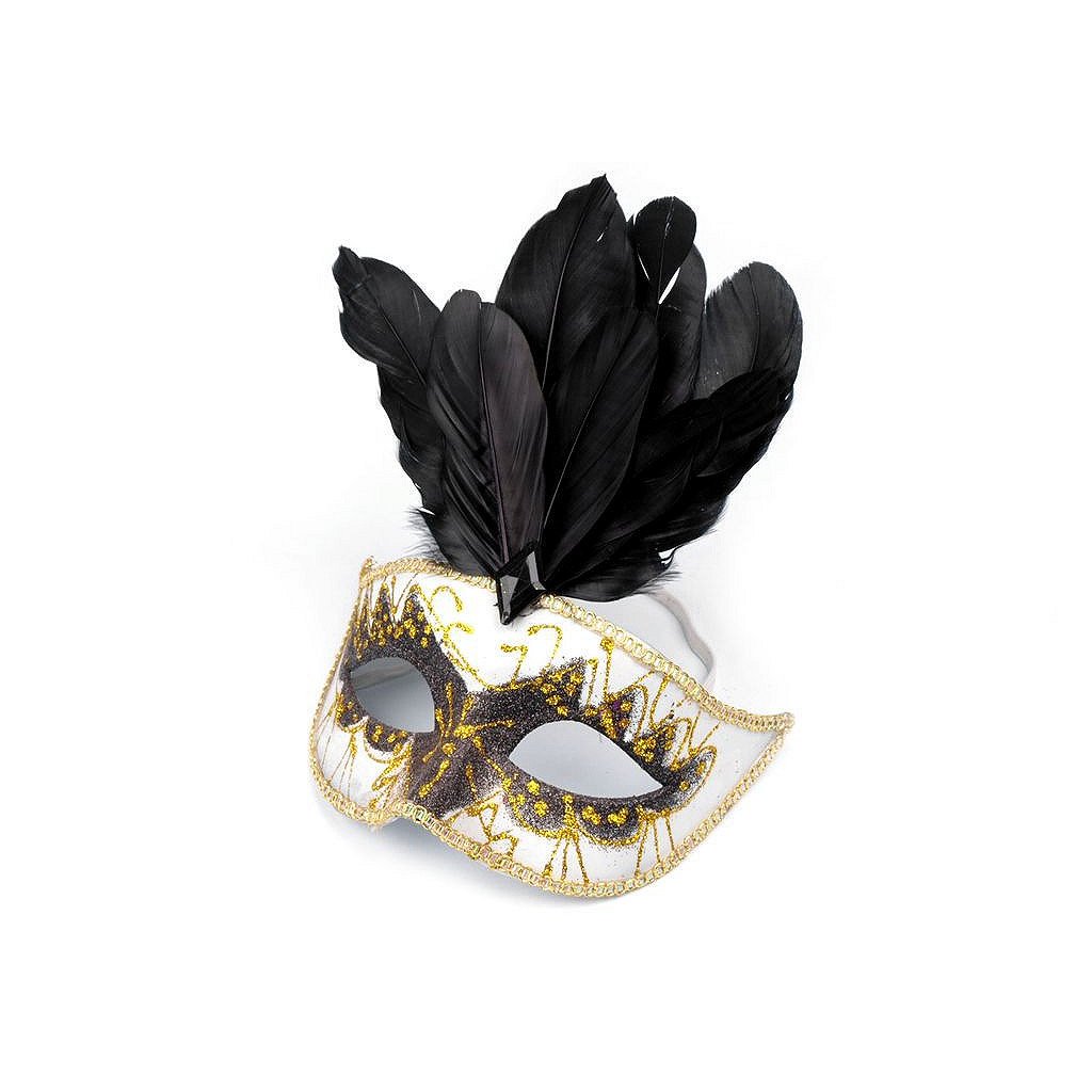 Karnevalová škraboška vám dodá tajemný a svůdný vzhled na večírcích, plesech, párty, karnevalu apod. Škraboška je místy pokrytá třpytivými glitry a doplněná broušeným kamenem a peřím.