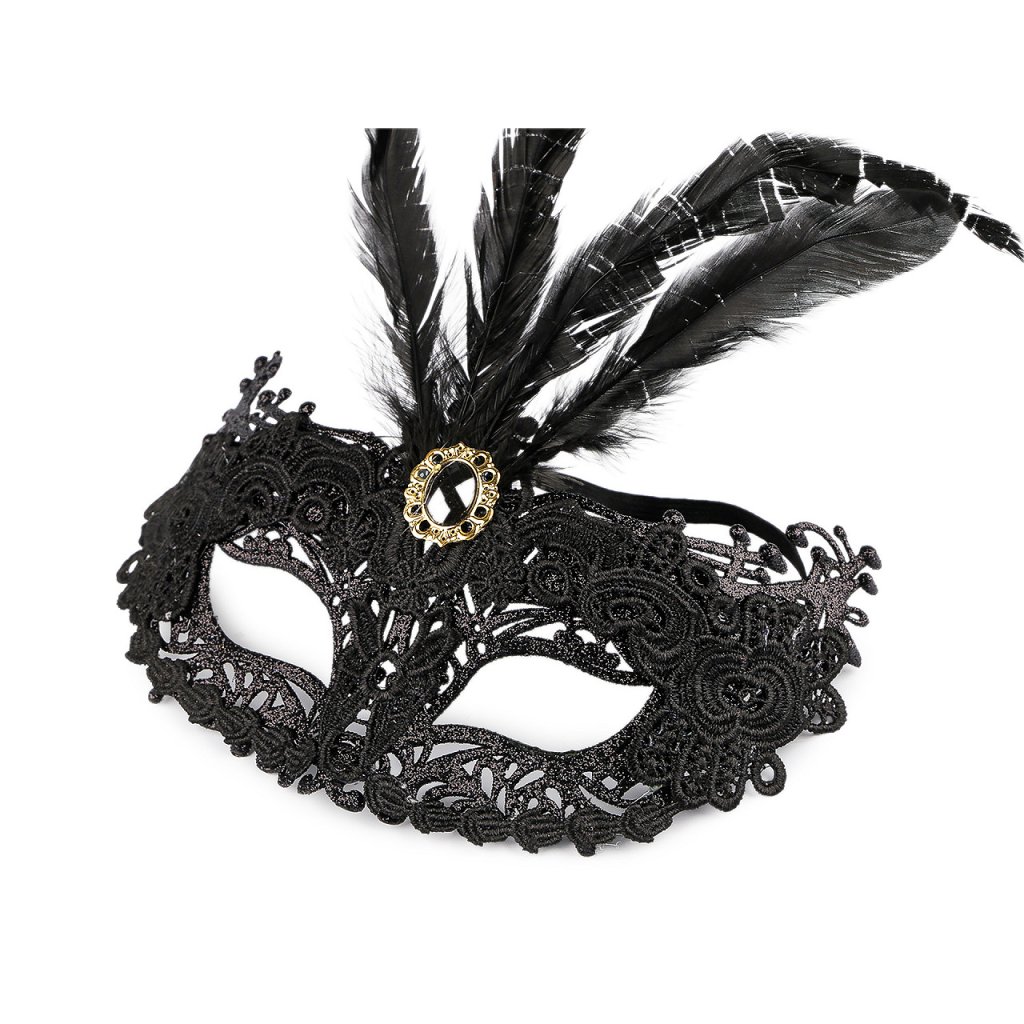 Karnevalová škraboška vám dodá tajemný a svůdný vzhled na večírcích, plesech, párty, karnevalu apod. Škraboška je celá pokrytá třpytivými glitry a doplněná elegantní krajkou. Střed škrabošky je doplněný broušeným kamenem a peřím.