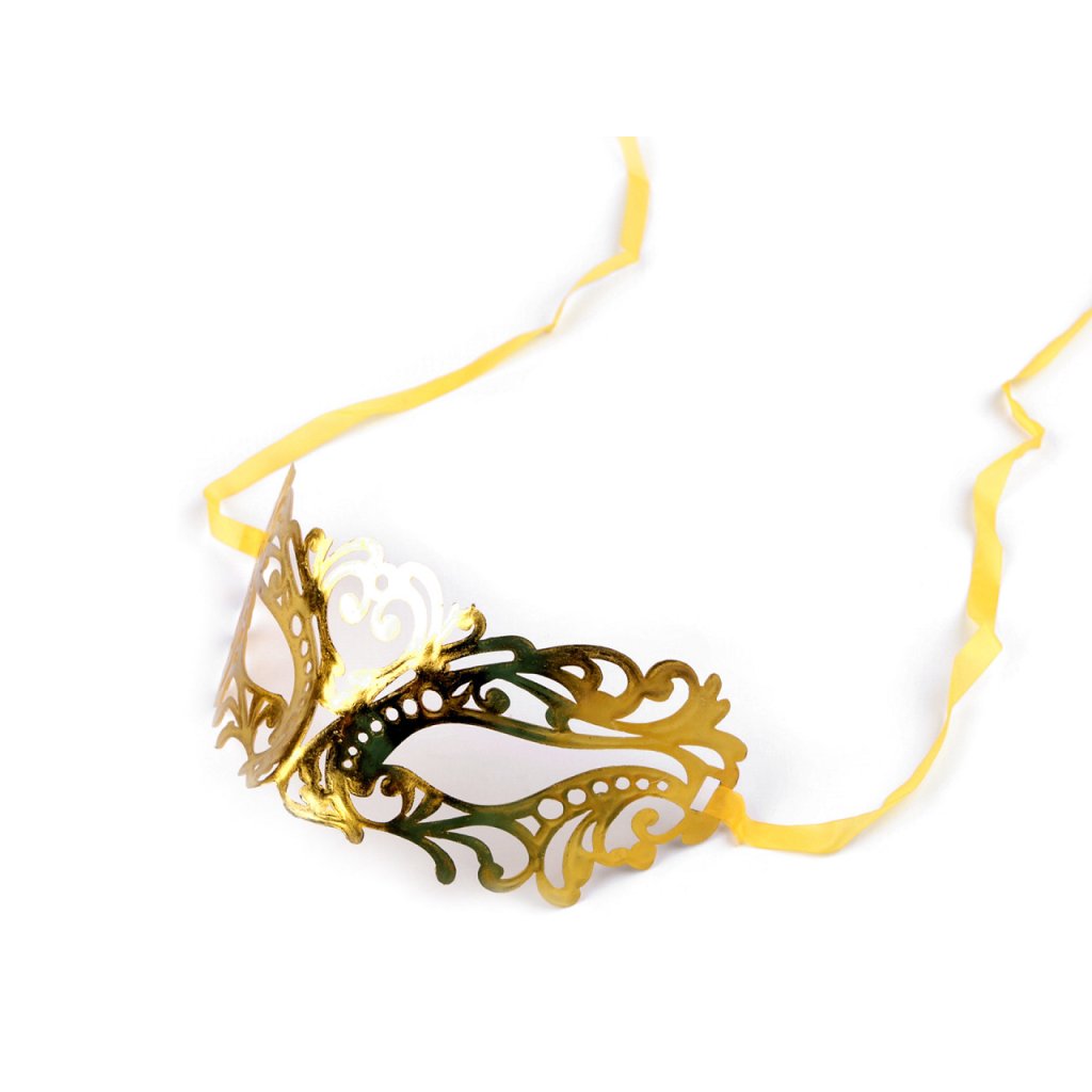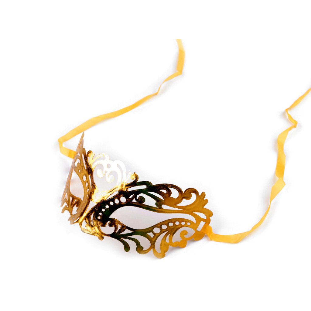 Efektní škrabošku v metalických barvách využijete jako doplněk na karnevaly, párty, večírky nebo plesy. Je vyrobená z pevného plastu, který dobře drží tvar. Uvazuje se pomocí stuhy.
