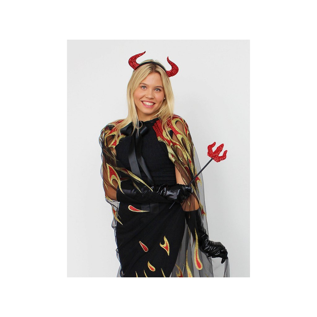 S karnevalovou sadou se proměníte v čerta či čertici. Sada obsahuje čelenku s rohy a čertovské žezlo. Díky lesklým lamelám v červeném textilním potahu se jemně třpytí.