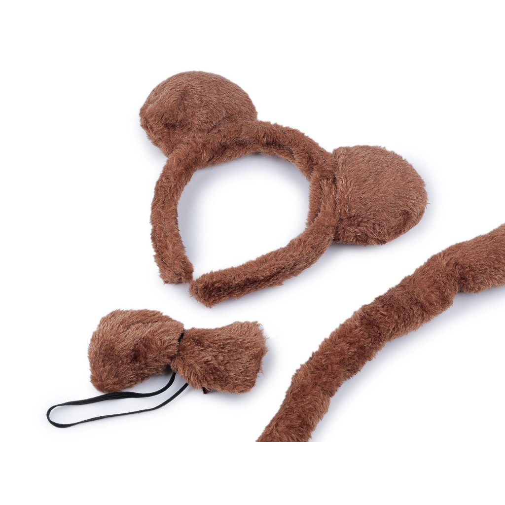 Karnevalová sada promění vaše dítko v roztomilé zvířátko - může to být opička nebo medvídek. Obsahuje čelenku s ušima, motýlka a ocásek - vše je plyšové.