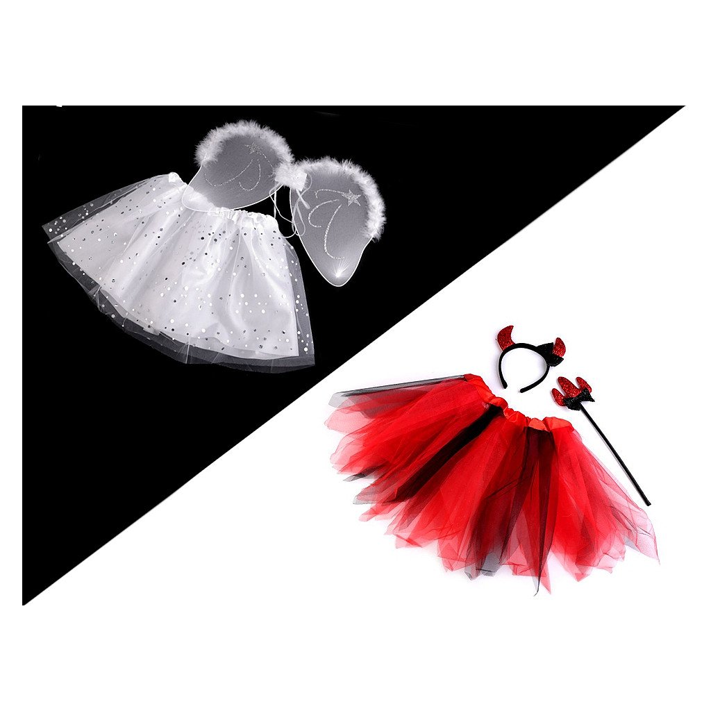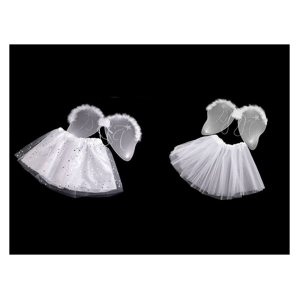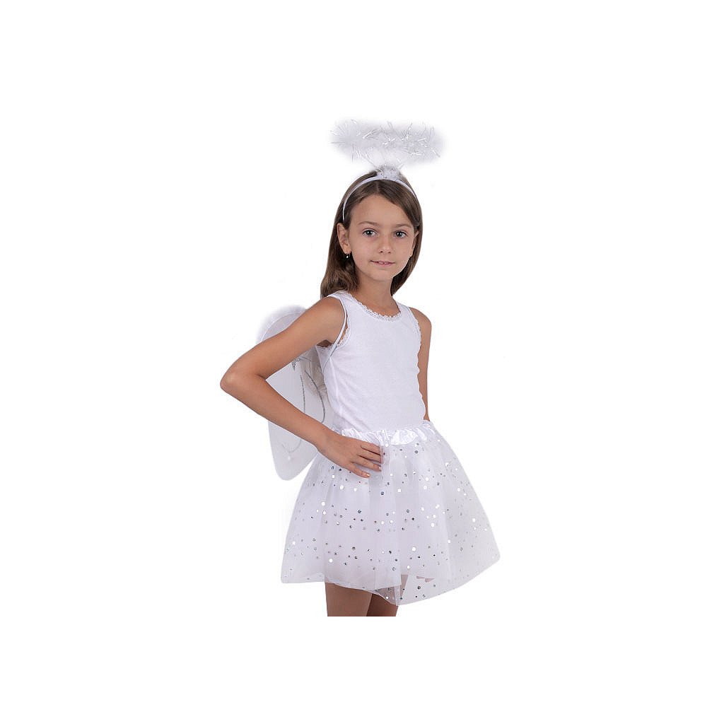 Kostým anděla se skládá z tylové sukýnky a křídel, která jsou vyztužená a nasazují se pomocí gumiček. Rozměry křídel jsou 32 x 43 cm, délka sukně je 32 cm, obvod pasu je 48 - 80 cm.