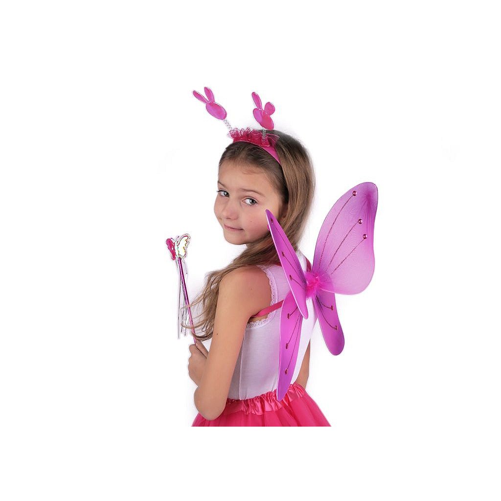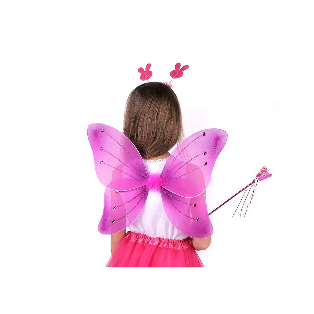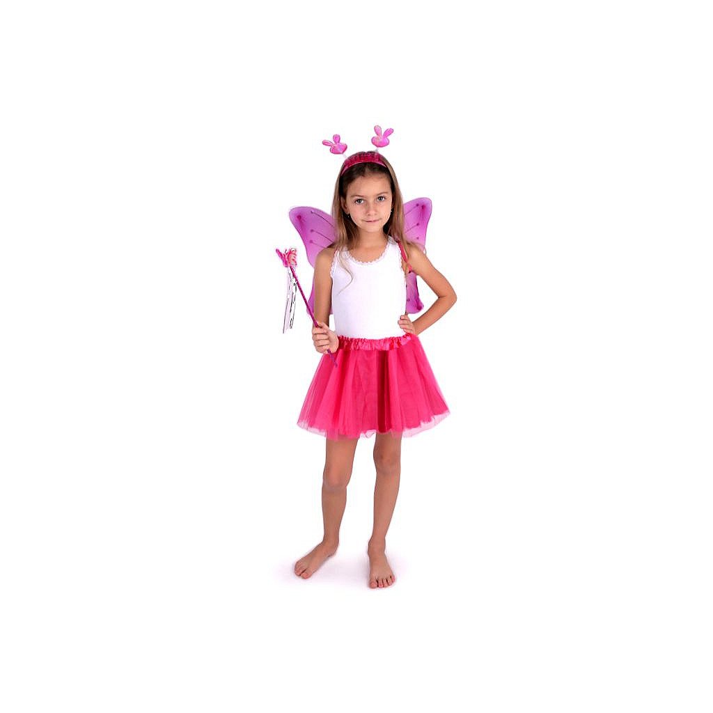 Kostým se skládá z tylové sukýnky, křídel, hůlky a čelenky s tykadly. Vyztužená křídla se nasazují pomocí gumiček.