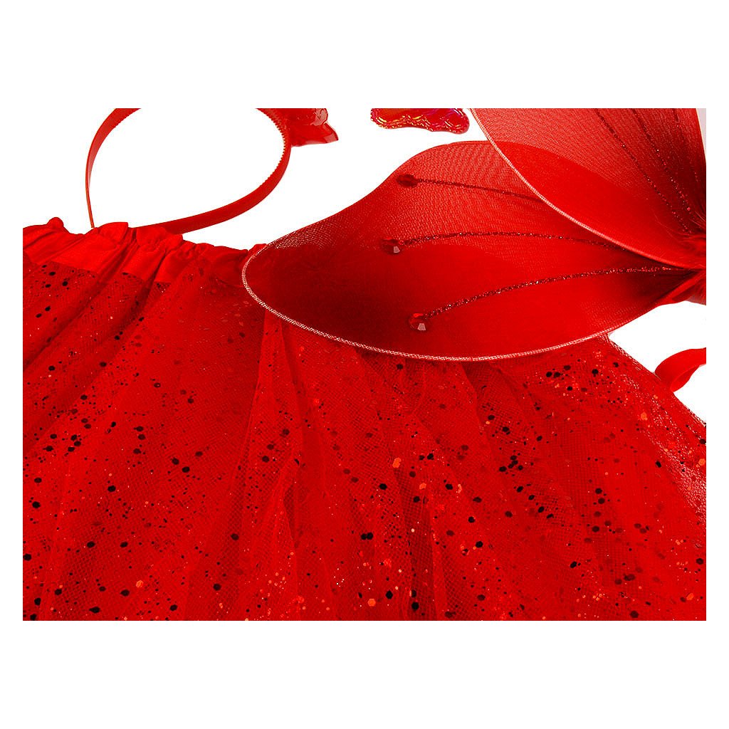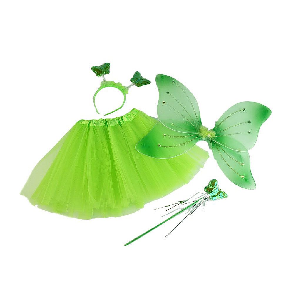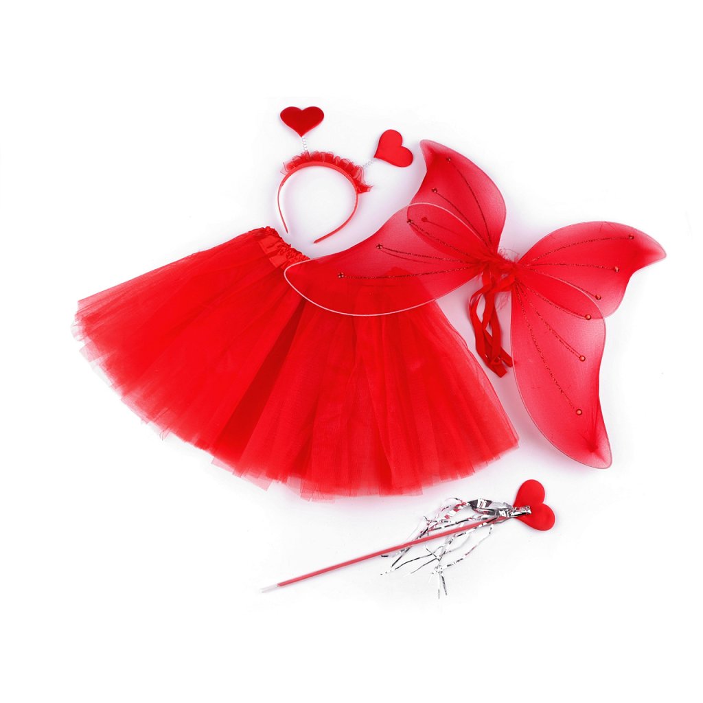 Kostým se skládá z tylové sukýnky, křídel, hůlky a čelenky s tykadly. Vyztužená křídla se nasazují pomocí gumiček.