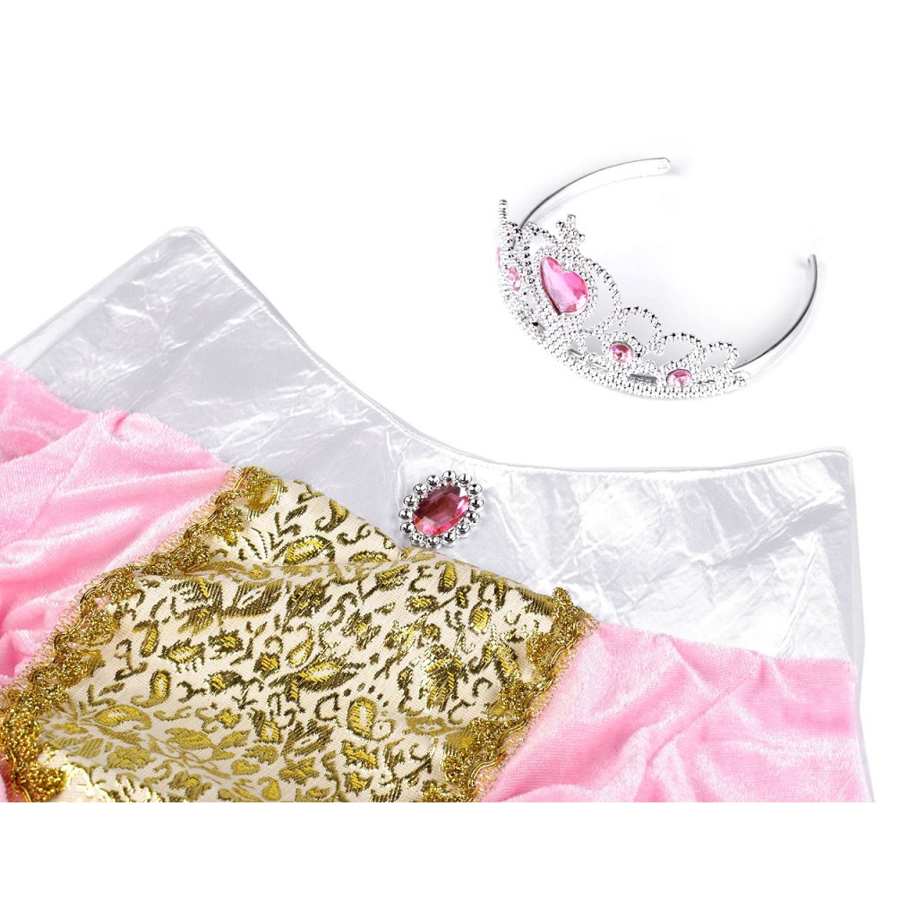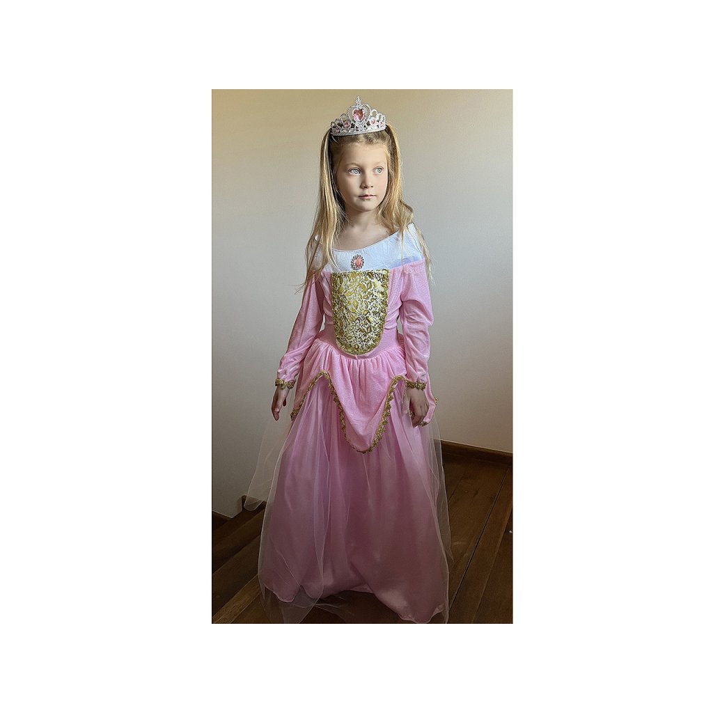 Luxusní karnevalové šaty promění každou holčičku v okouzlující a urozenou princeznu nejen na karnevale, ale i na dětských oslavách a při hraní doma. Šaty mají efektně ušité detaily. Vršek šatů je sametový, sukně saténová s vrchní nadýchanou tylovou vrstvou. V pase mají našitou pruženku, takže se své nositelce skvěle přizpůsobí. Součástí sady je i čelenka s korunkou. Pod sukní je spodnička z netkané textilie, která šatům zajišťuje objem. Rozměry: - obvod korunky: 32 cm Velikost S: - délka rukávu: 44 cm - obvod hrudníku: 66 cm - obvod pasu: 50 - 78 cm - délka: 90 cm Velikost M: - délka rukávu: 50 cm - obvod hrudníku: 66 cm - obvod pasu: 54 - 90 cm - délka: 93 cm Velikost L: - délka rukávu: 55 cm - obvod hrudníku: 72 cm - obvod pasu: 78 - 92 cm - délka: 100 cm- Velikost S: 4 - 5 let