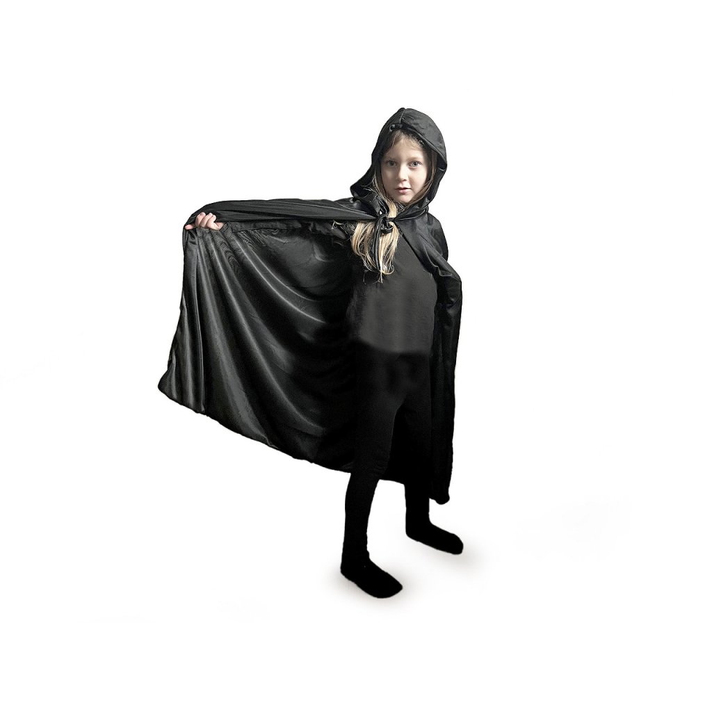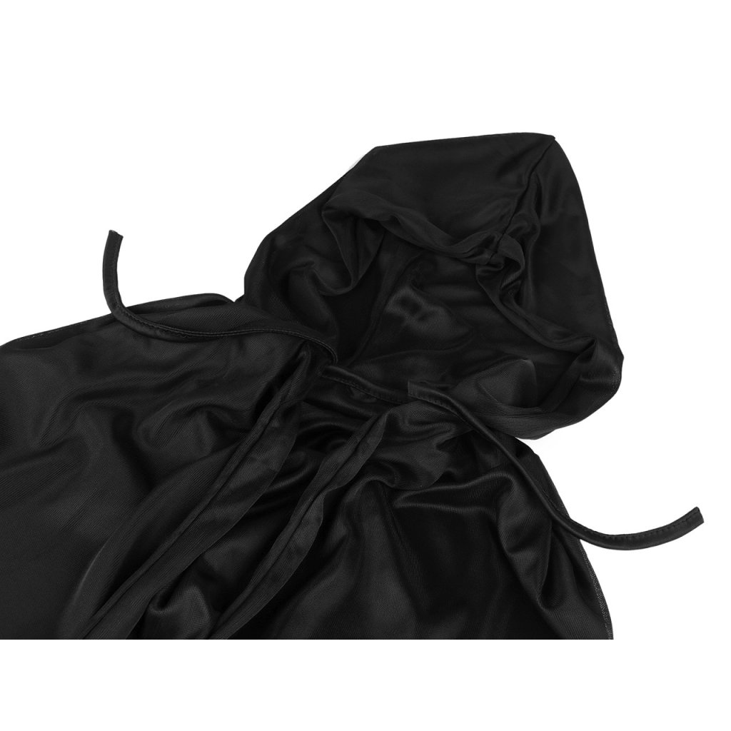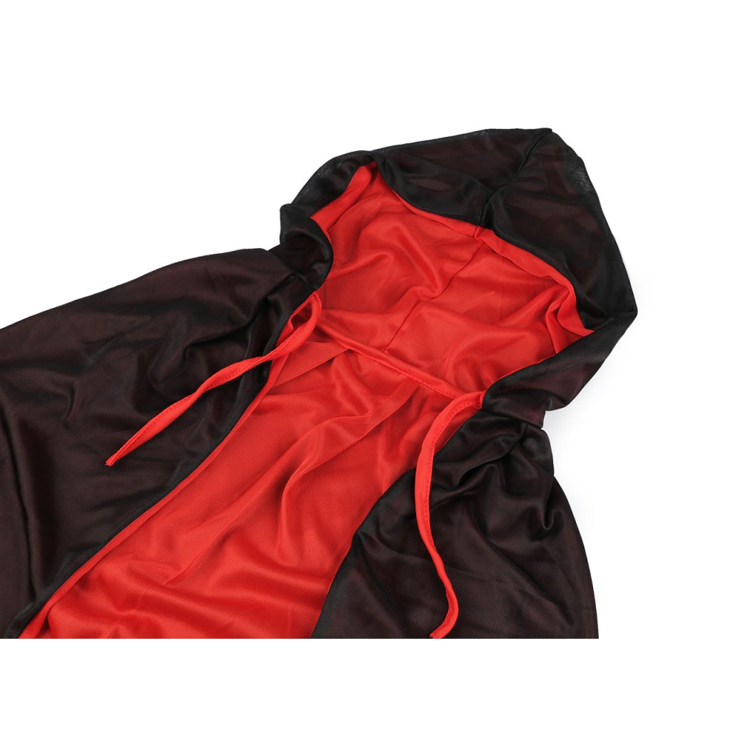 Karnevalový plášť s kapucí využijete ke kostýmu černokněžníka, kouzelníka, loupežníka, upíra, čarodějnice apod. Váže se pomocí šňůrek. Plášť má dvě vrstvy, materiál je poloprůhledný.
