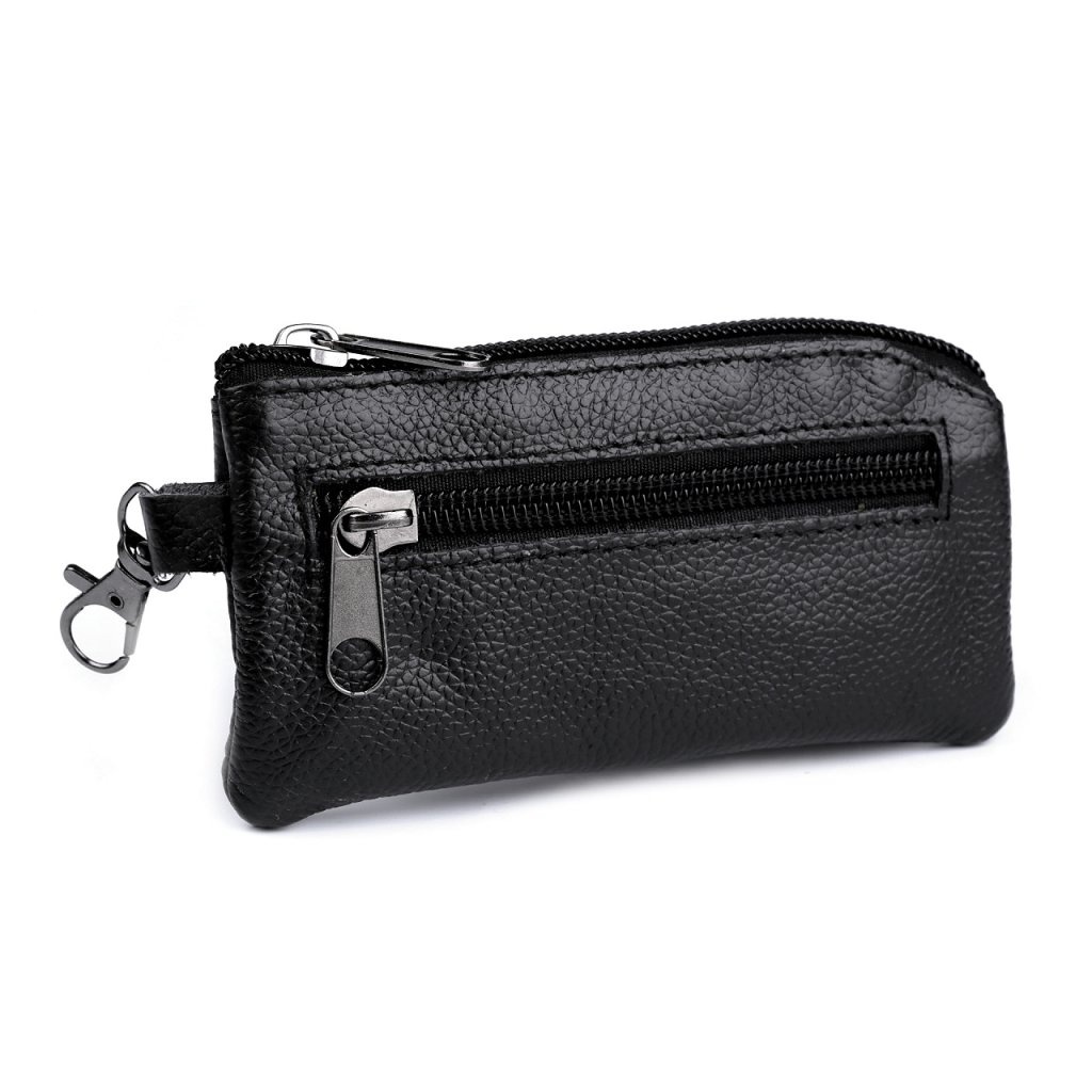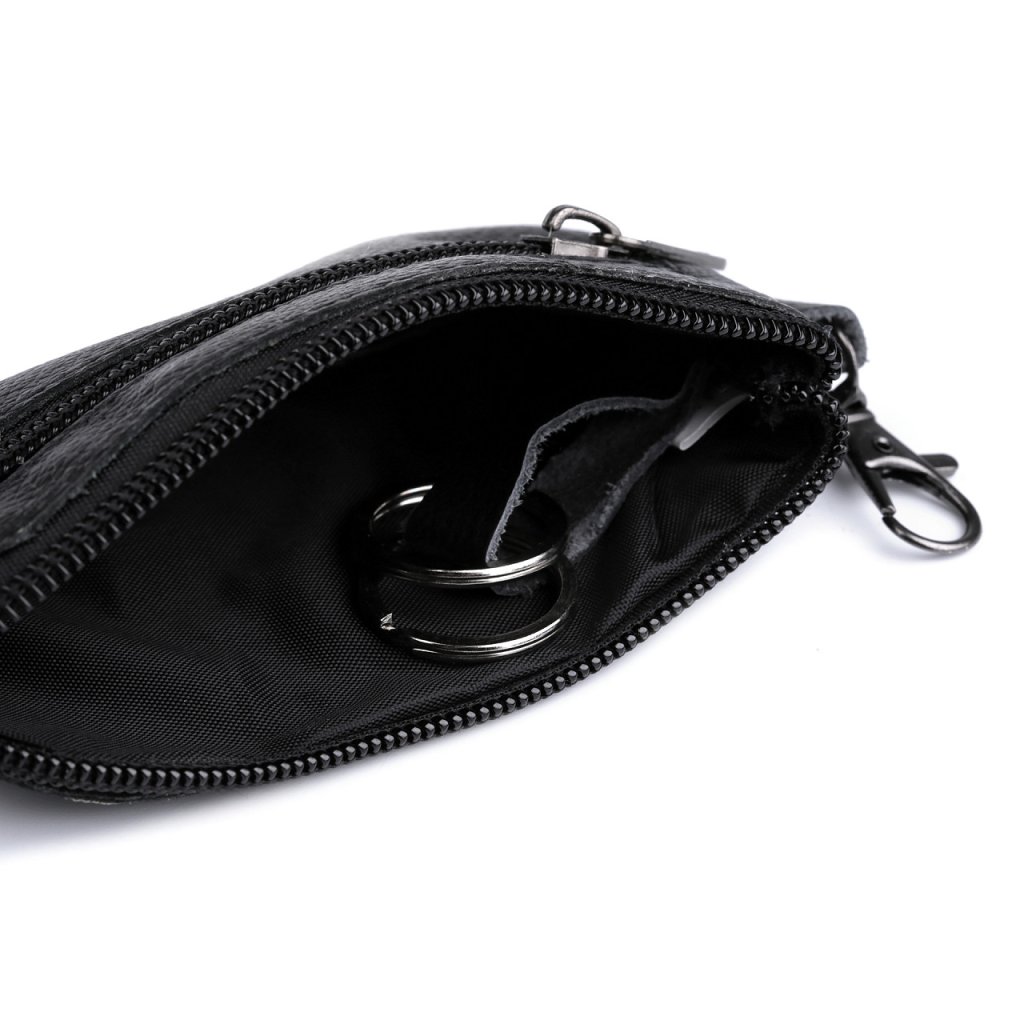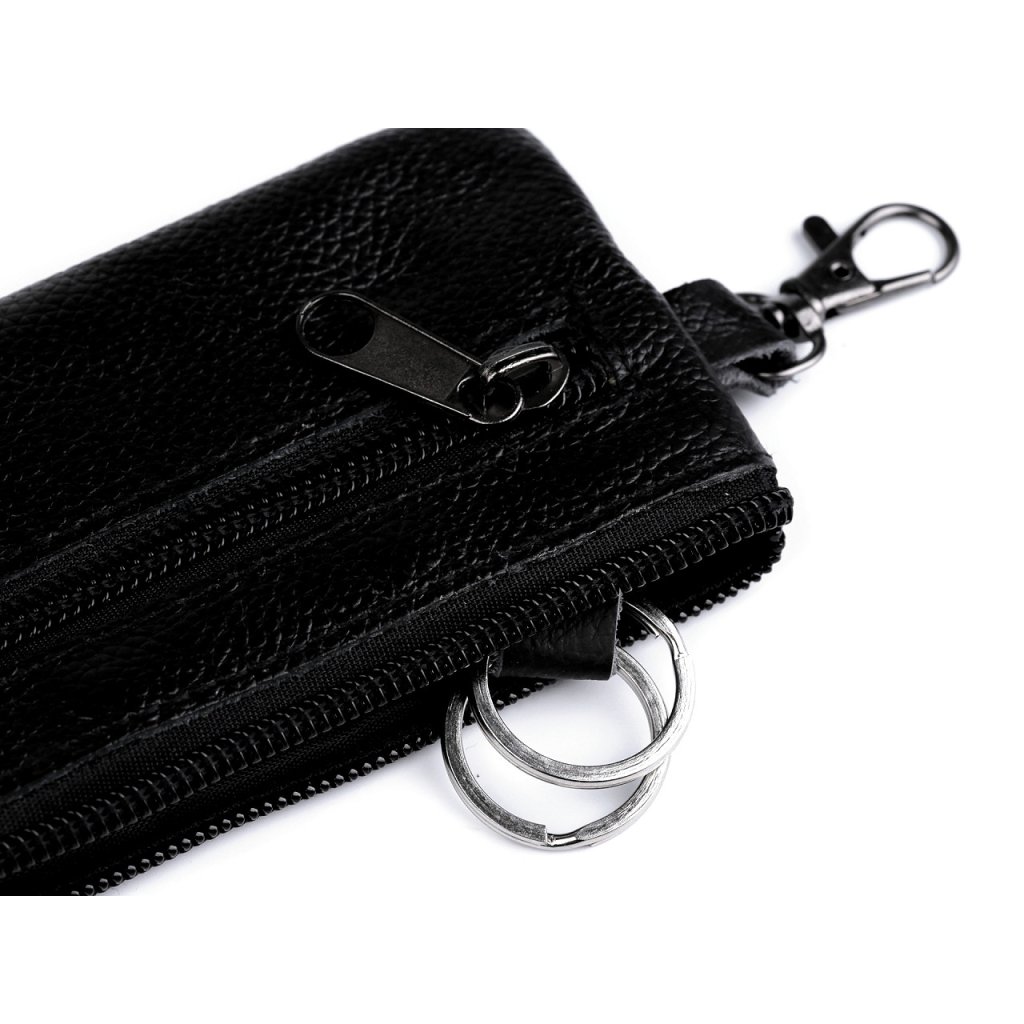 V hlavní kapse, která se zapíná na zip, je umístěné poutko se dvěma kovovými kroužky na klíče. Na boční straně je malá kapsička na zip, do které se vejdou drobné mince a složené bankovky. Nahoře má peněženka poutko s kovovou otočnou karabinou.