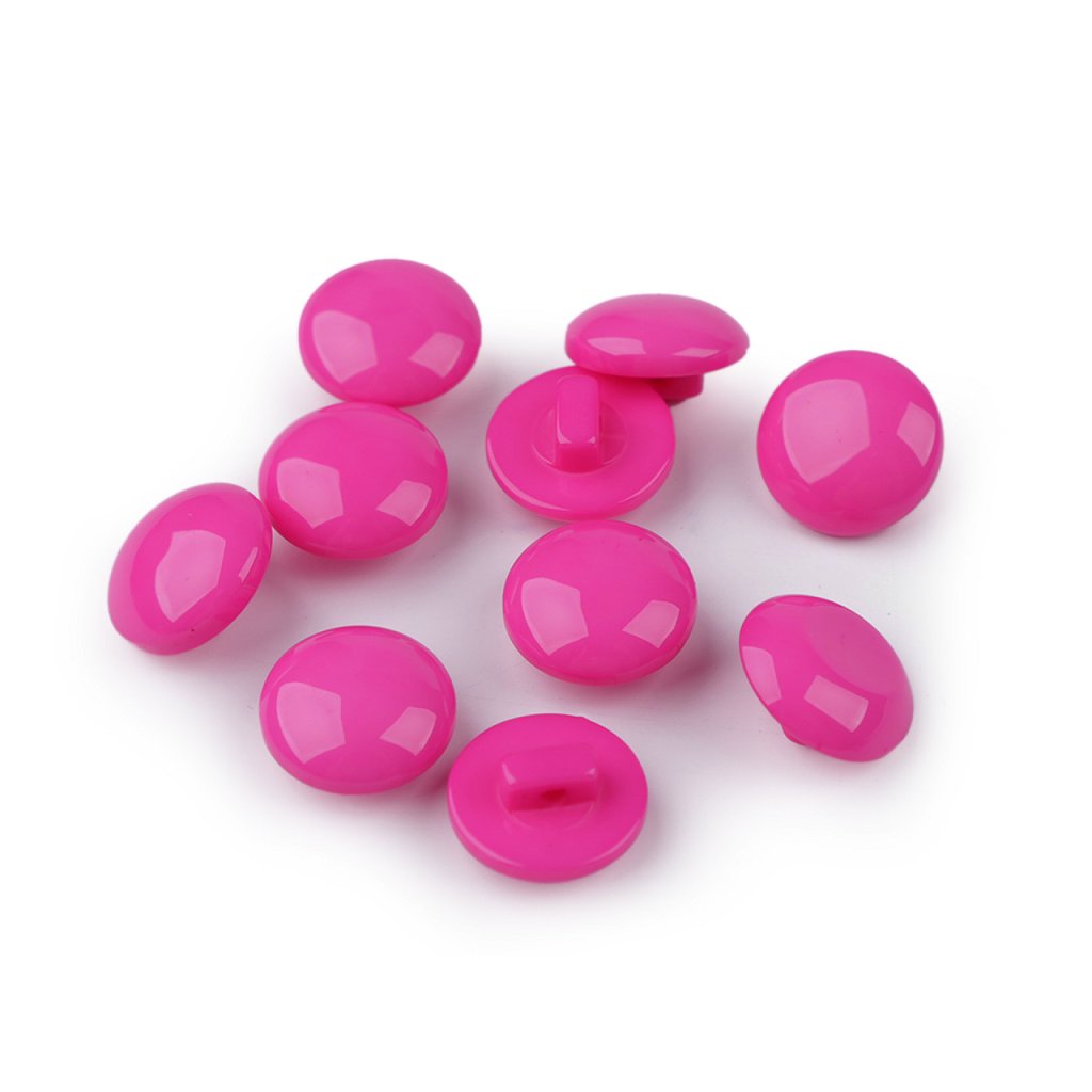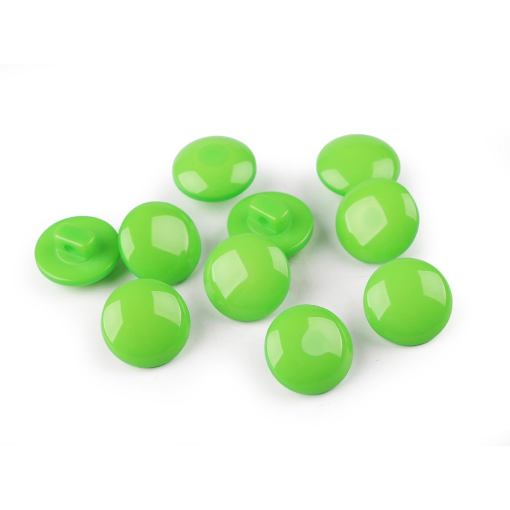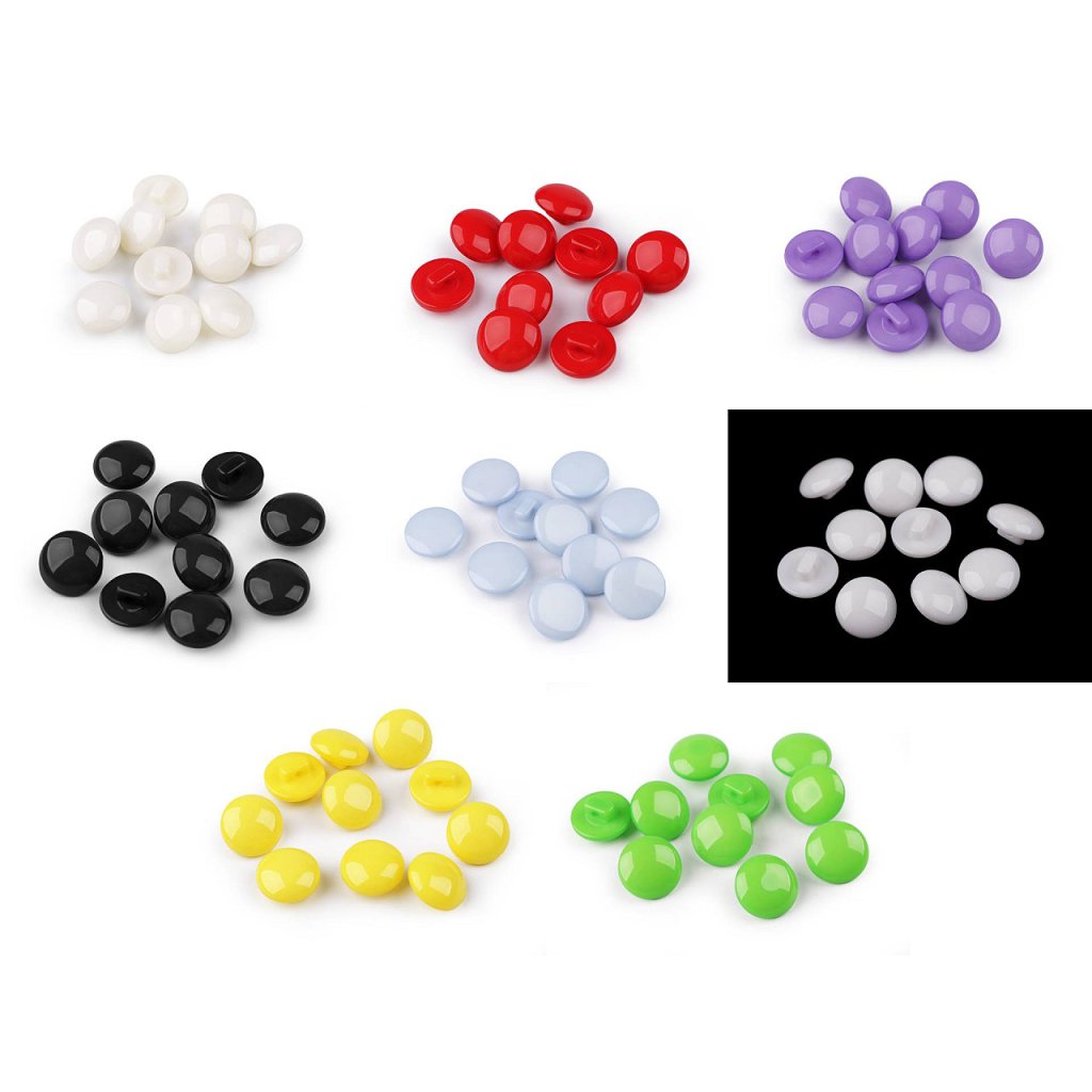 Jednoduché plastové knoflíky, ve veselých barvách, vyniknou na halenkách, šatech nebo svetrech. Jsou vhodné také na výrobu různých dekorací. Knoflíky mají spodní přišívání. Jsou mírně vypouklé.