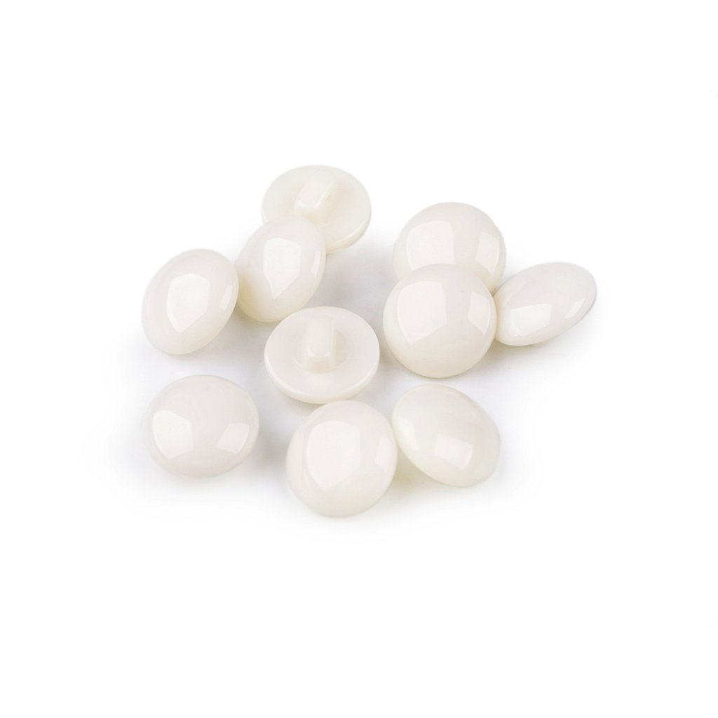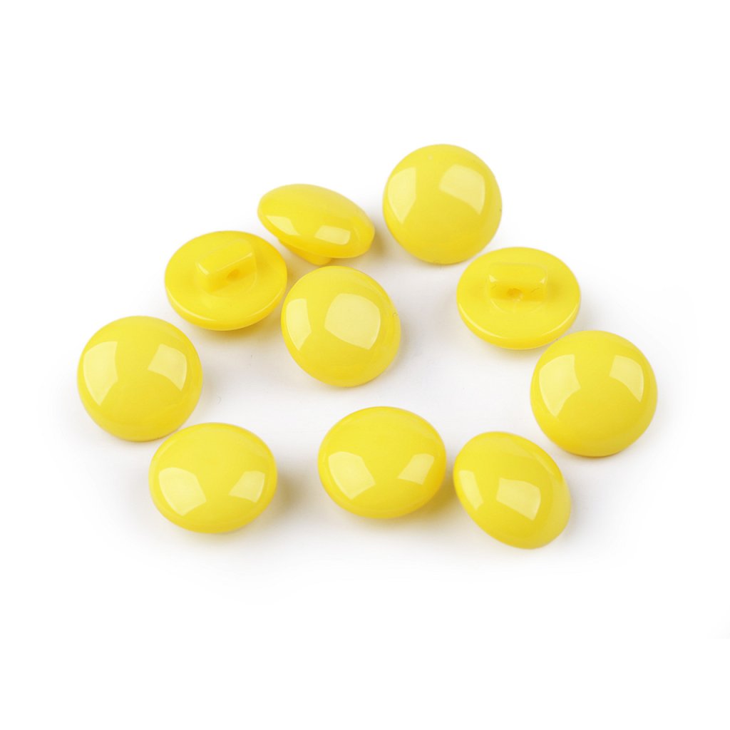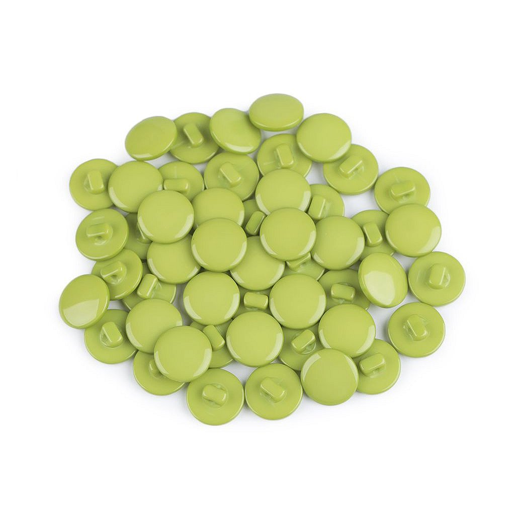 Jednoduché plastové knoflíky, ve veselých barvách, vyniknou na halenkách, šatech nebo svetrech. Jsou vhodné také na výrobu různých dekorací. Knoflíky mají spodní přišívání. Jsou mírně vypouklé.