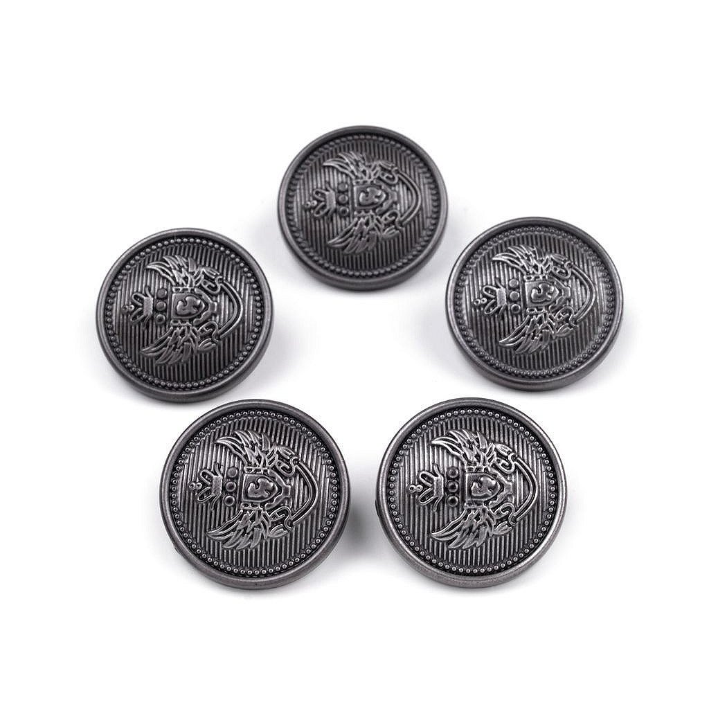 Na plastových knoflících naleznete erb, který vám vynikne na kabátu. Můžete je našít na vojenské nebo myslivecké oblečení, perfektně se budou vyjímat i na historických kostýmech. Tyto knoflíky mají spodní přišívání. Velikost knoflíků naleznete v této tabulce.