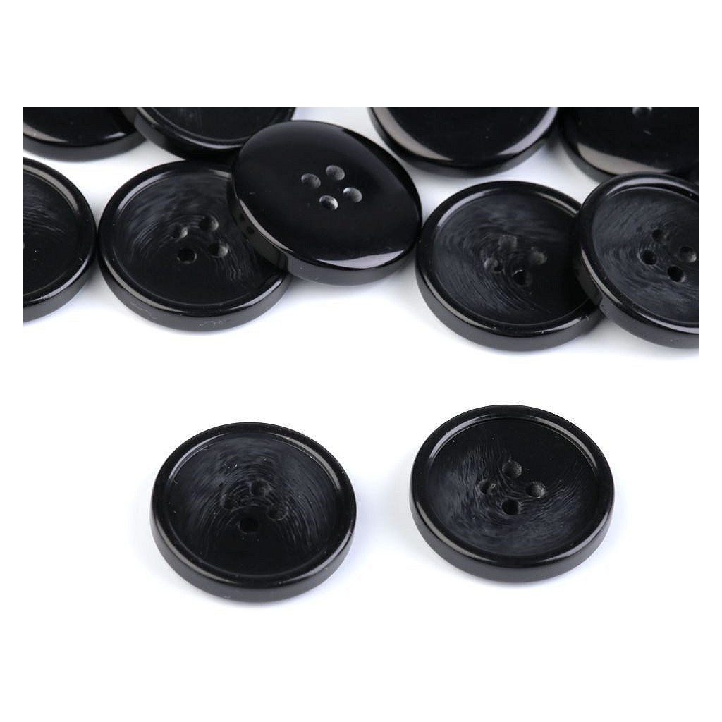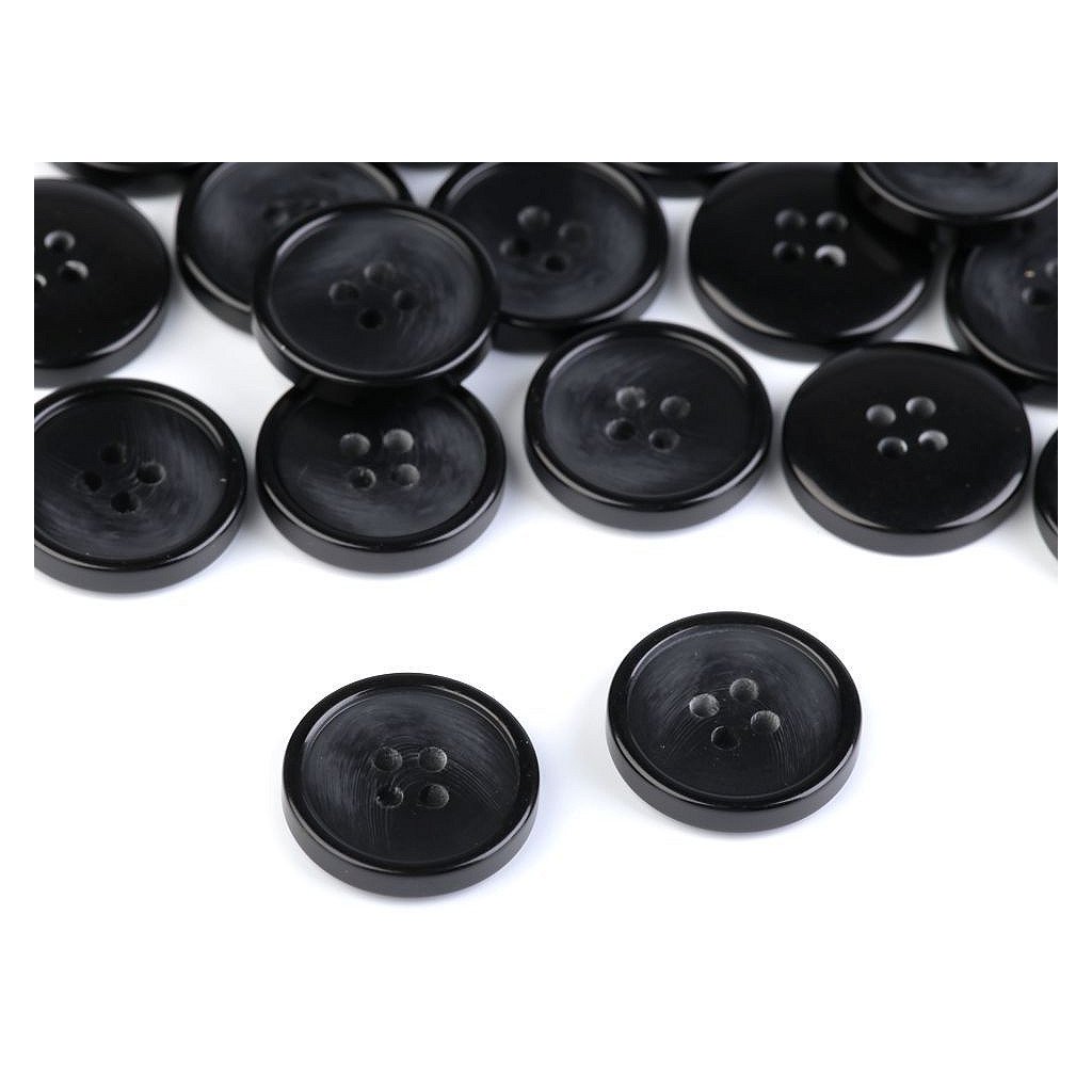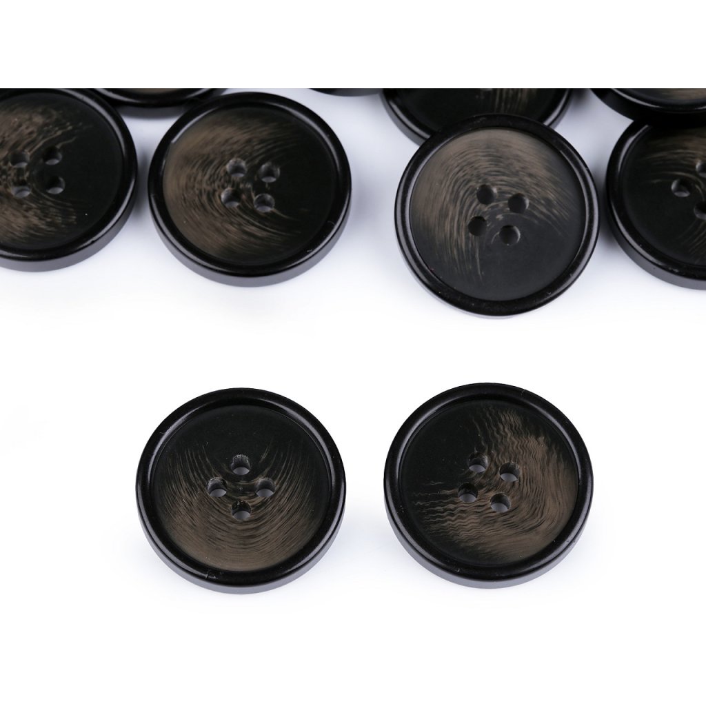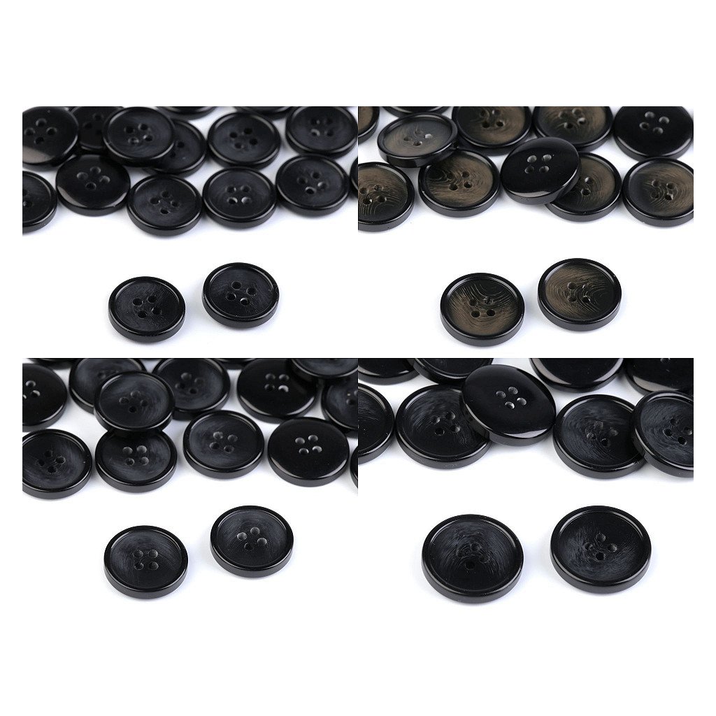 Čtyřdírkové knoflíky umožňují několik druhů přišití. Mají lehce zvýrazněný okraj.