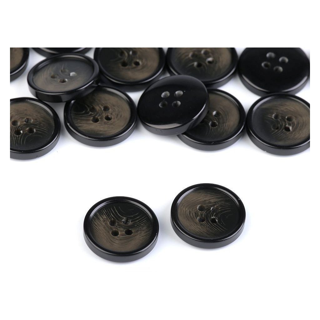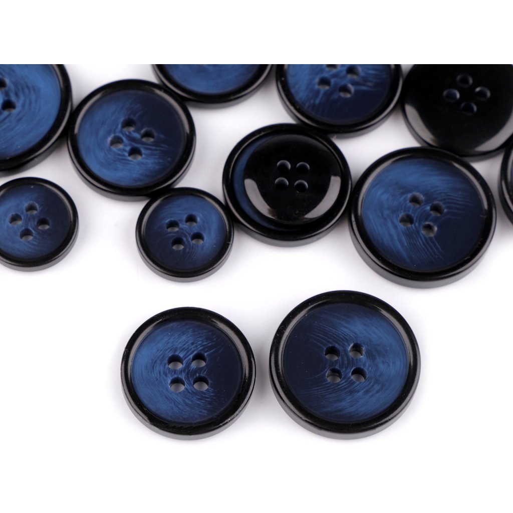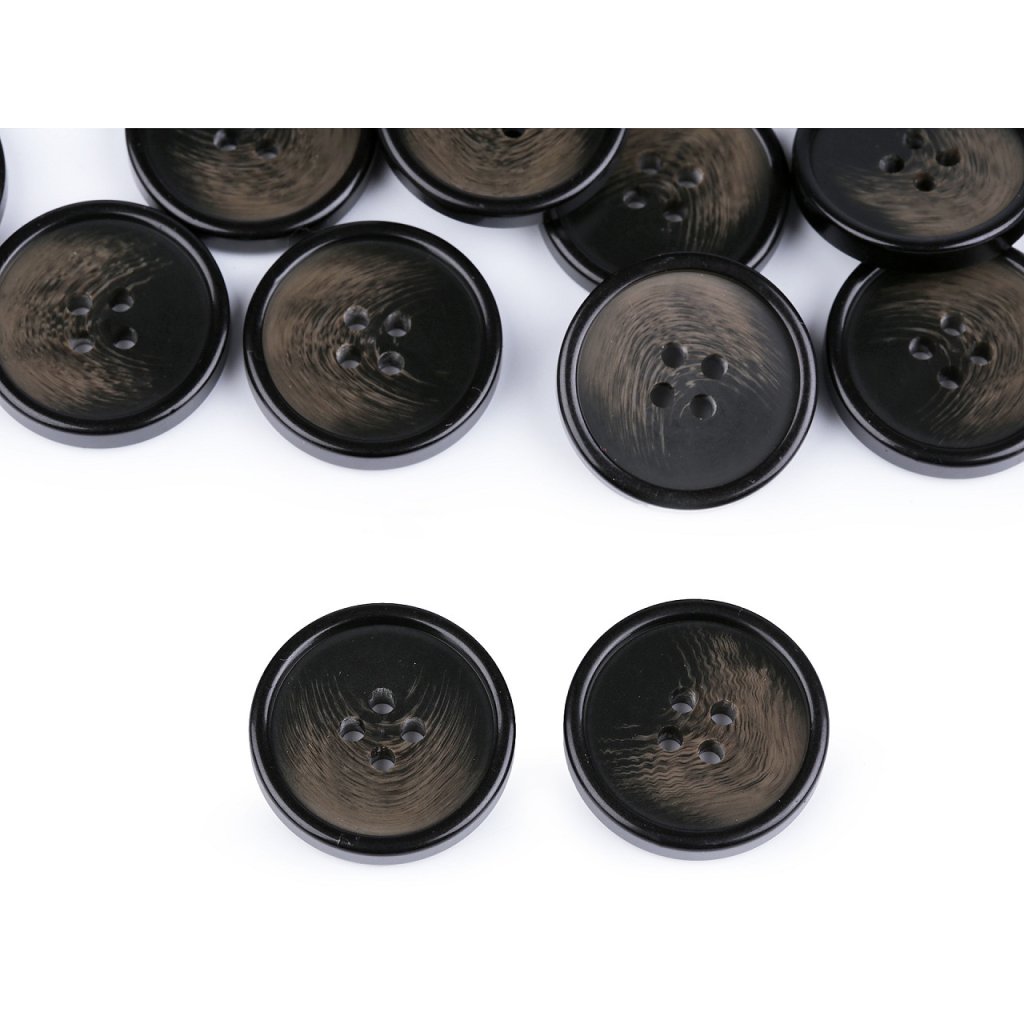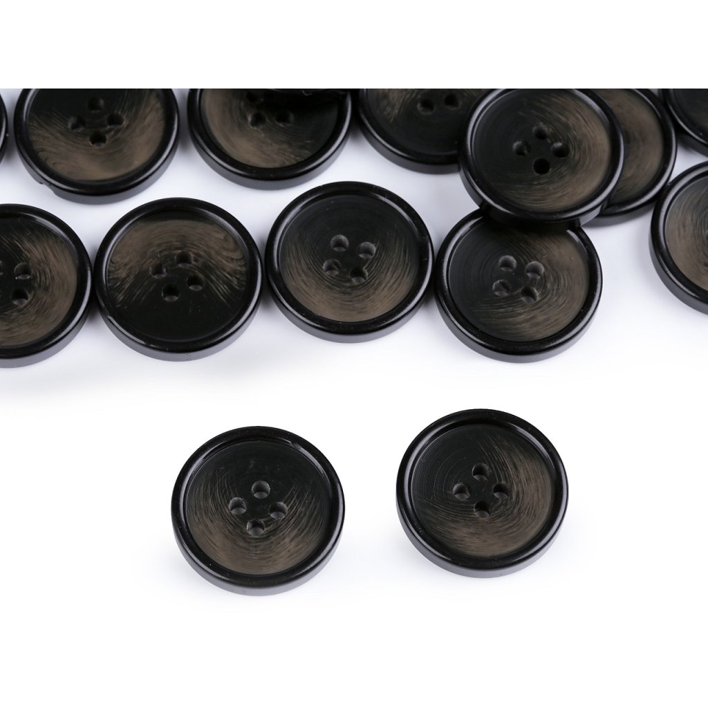 Čtyřdírkové knoflíky umožňují několik druhů přišití. Mají lehce zvýrazněný okraj.