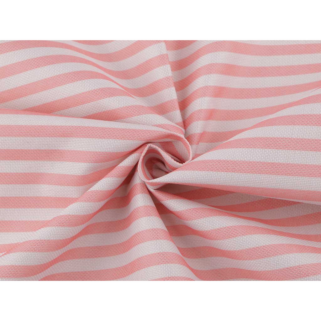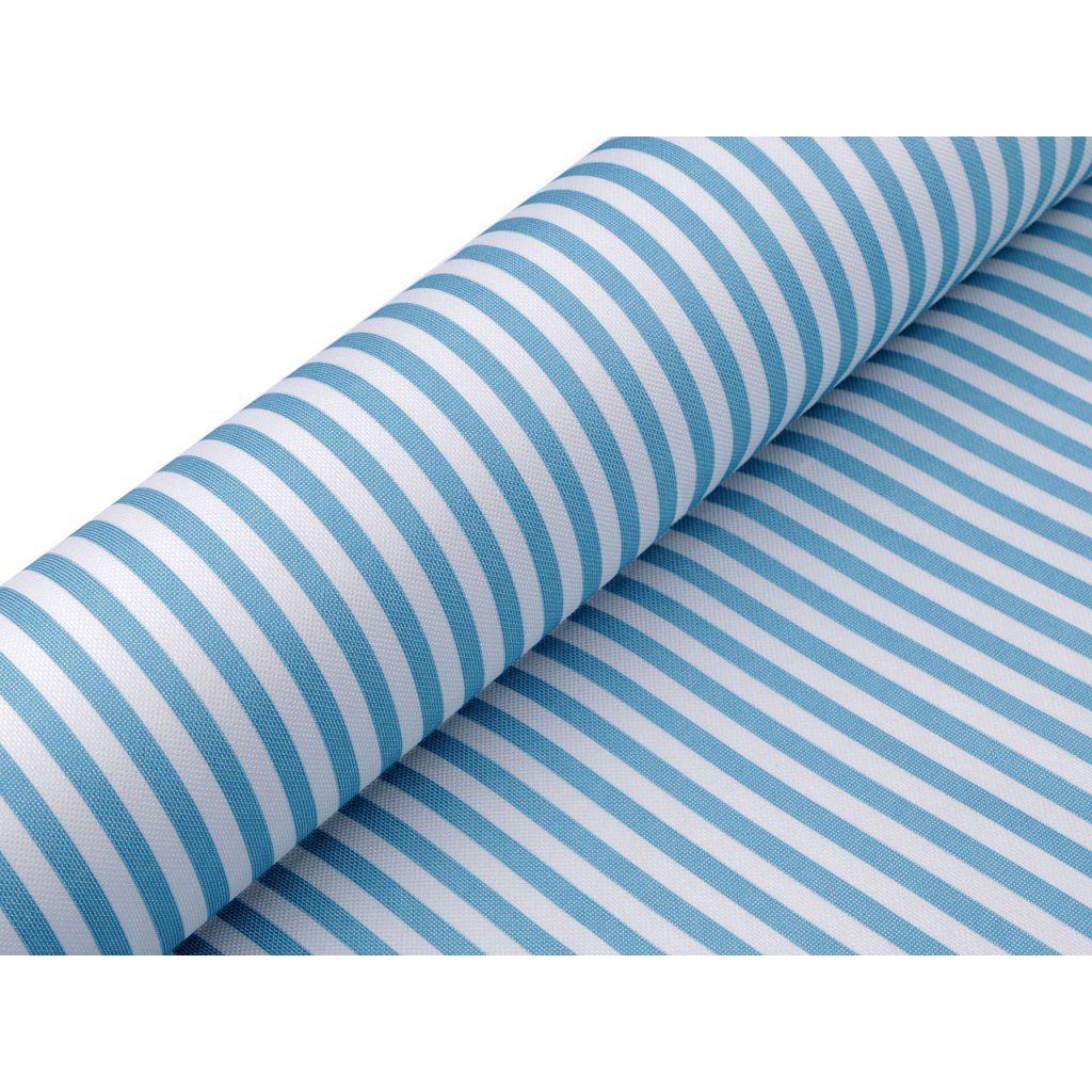 Pruhovaná kočárkovina je z rubové strany opatřená nánosem z PVC s vodoodpudivou úpravou, díky tomu je nepromokavá. Je pevná, oděruvzdorná a hrubší. Využijete ji na šití tašek, batohů, potahů, kočárků, pelíšků pro zvířátka, sedacích vaků, lehátek, slunečníků apod.
