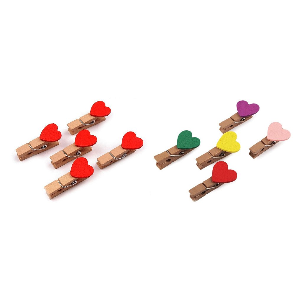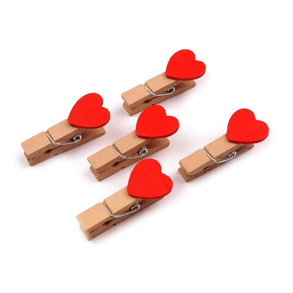 Dřevěné kolíčky se srdíčky v pestrých barvách se zalíbí především dětem a potěší i zamilované.Použití: Veselá dekorace oživí především dětské pokojíčky. Stačí jen natáhnout šňůrku a kolíčkem přichytit oblíbené fotografie vašich nejmenších. Také kresby, které vytvoří vaši malí umělci, najdou na šňůrce své místo. Dekorační kolíčky můžete použít k uchycení jmenovek při určování zasedacího pořádku u svatebního stolu.Balení obsahuje: kolíčky se srdíčkem, šňůrku o délce cca 100 cm