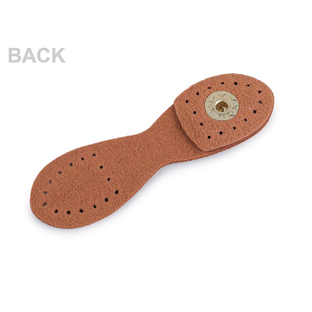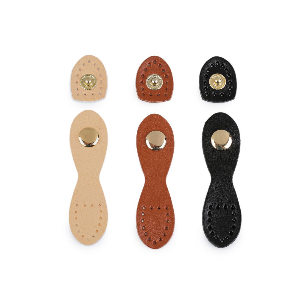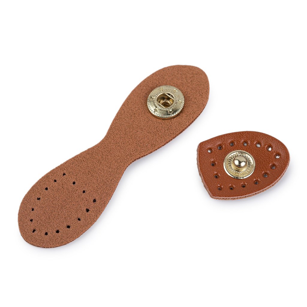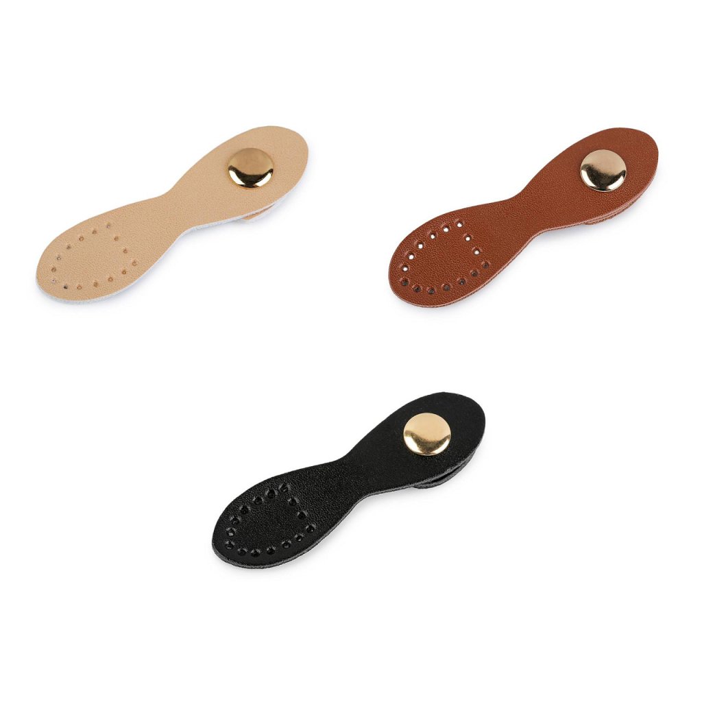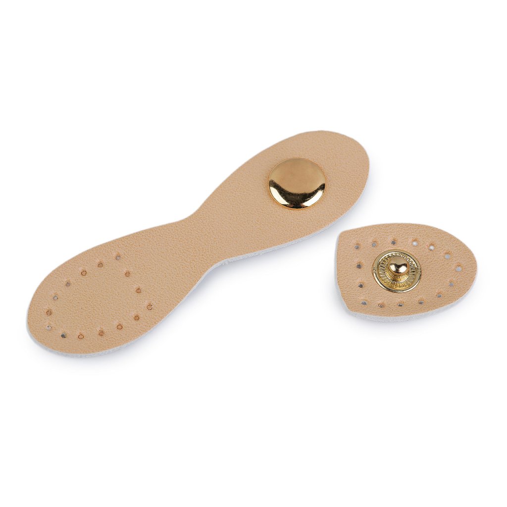 Elegantní zapínání z eko kůže se skládá ze dvou částí, které se přišívají k podkladovému materiálu. Zapíná se na kovový druk. Využijete ho při výrobě kabelek, tašek, peněženek nebo diářů.