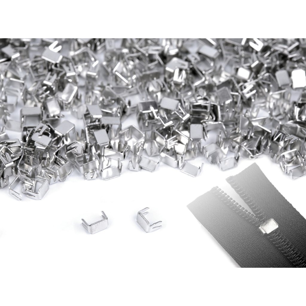 Kovová koncovka slouží k uzavření zipu, aby z něj nevyjel jezdec. Na konec zipu ji připevníte jednoduše - stačí jen přimáčknout zoubky pomocí kleští. Koncovka je vhodná ke spirálovým a kostěným zipům No 3.