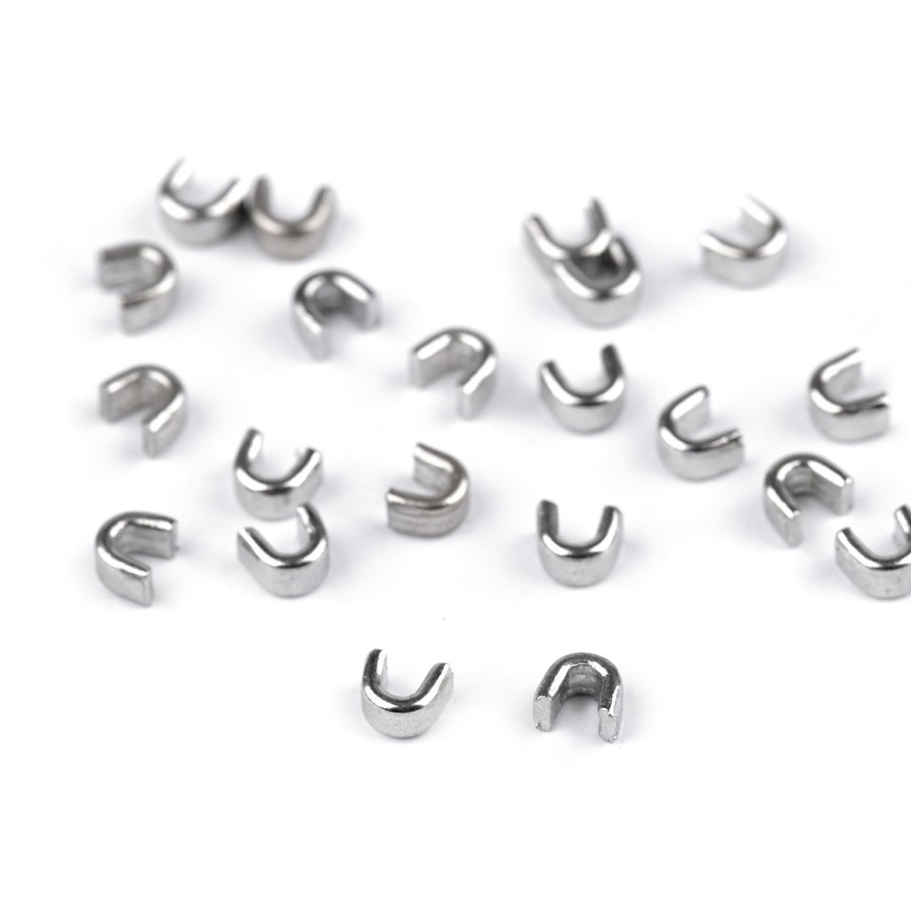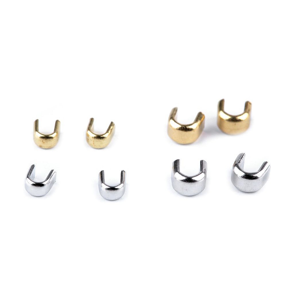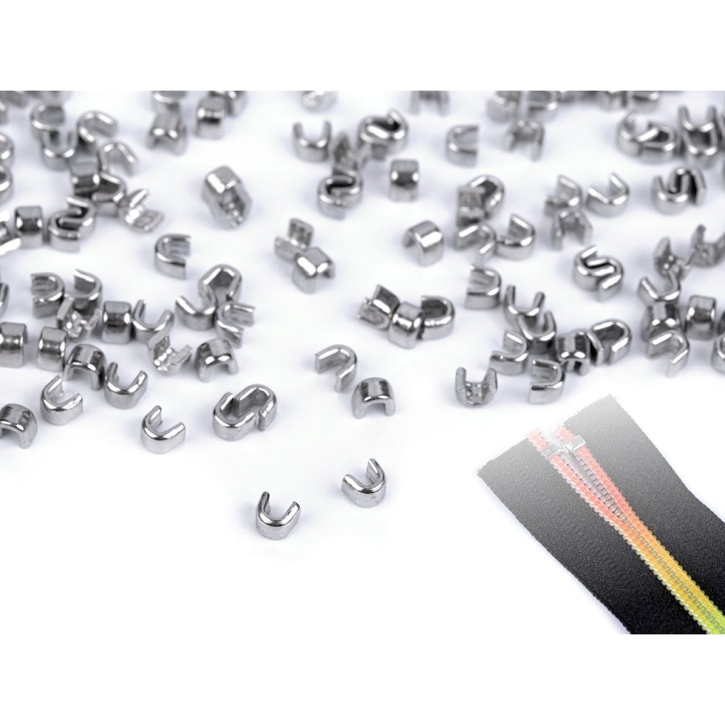 Kovové koncovky se nasazují na horní konce zipu, aby z nich nevyjel jezdec. Připevníte je tak, že je nasadíte na spirálu a lehce přicvaknete kleštěmi. Koncovky se hodí pro spirálové a kovové zipy, nejsou vhodné pro kostěné zipy.