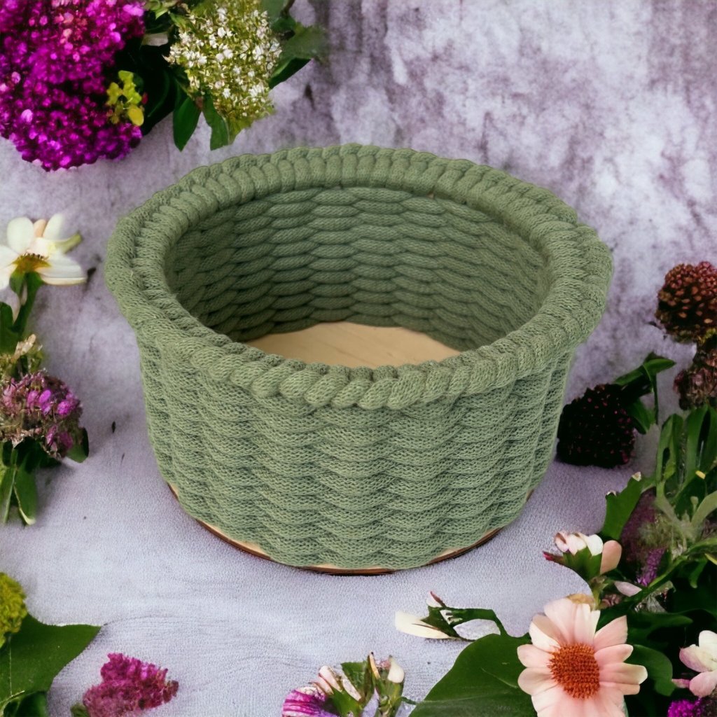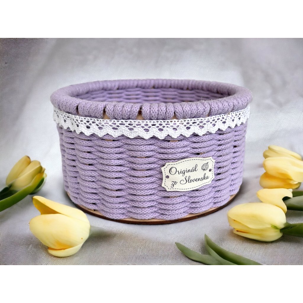 Je to opravdu snadné! Košík je pak velmi pevný díky konstrukci a hlavně - spotřebujete o polovinu méně příze, než u háčkování! Průměrná spotřeba na jeden košík je cca 22 metrů 5 mm příze. Vyplétání je také rychlejší, než háčkování. Po vypletení můžete košík dozdobit cedulkami, výřezy či krajkami, zkrátka tak, aby se vám líbil. Můžete také použít víka s knopkou, která na košík hezky dosednou.