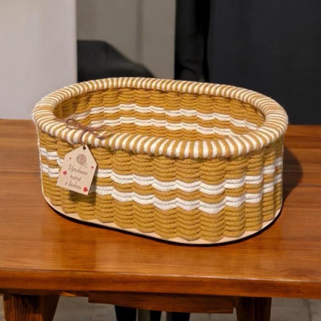 Konstrukce na košík "chlebník" je vhodná i pro naprosté začátečníky. Konstrukci doporučujeme slepit lepidlem nebo tavnou pistolí (viz videonávod). Vyplétat můžete z různých přízí a materiálů, nám se však nejvíce líbí z 5 mm přízí Woody.