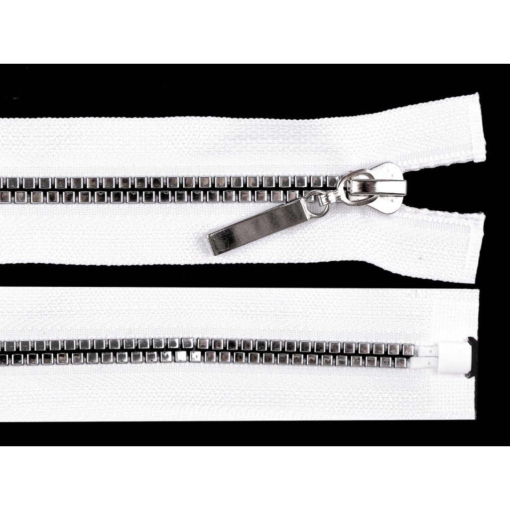 Dělitelný kostěný zip má efektní čtvercové zoubky. Využijete ho k našití na bundy nebo delší kabáty.