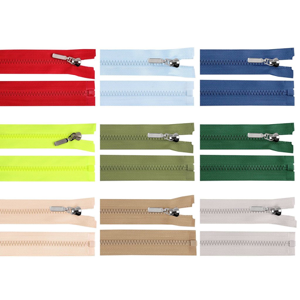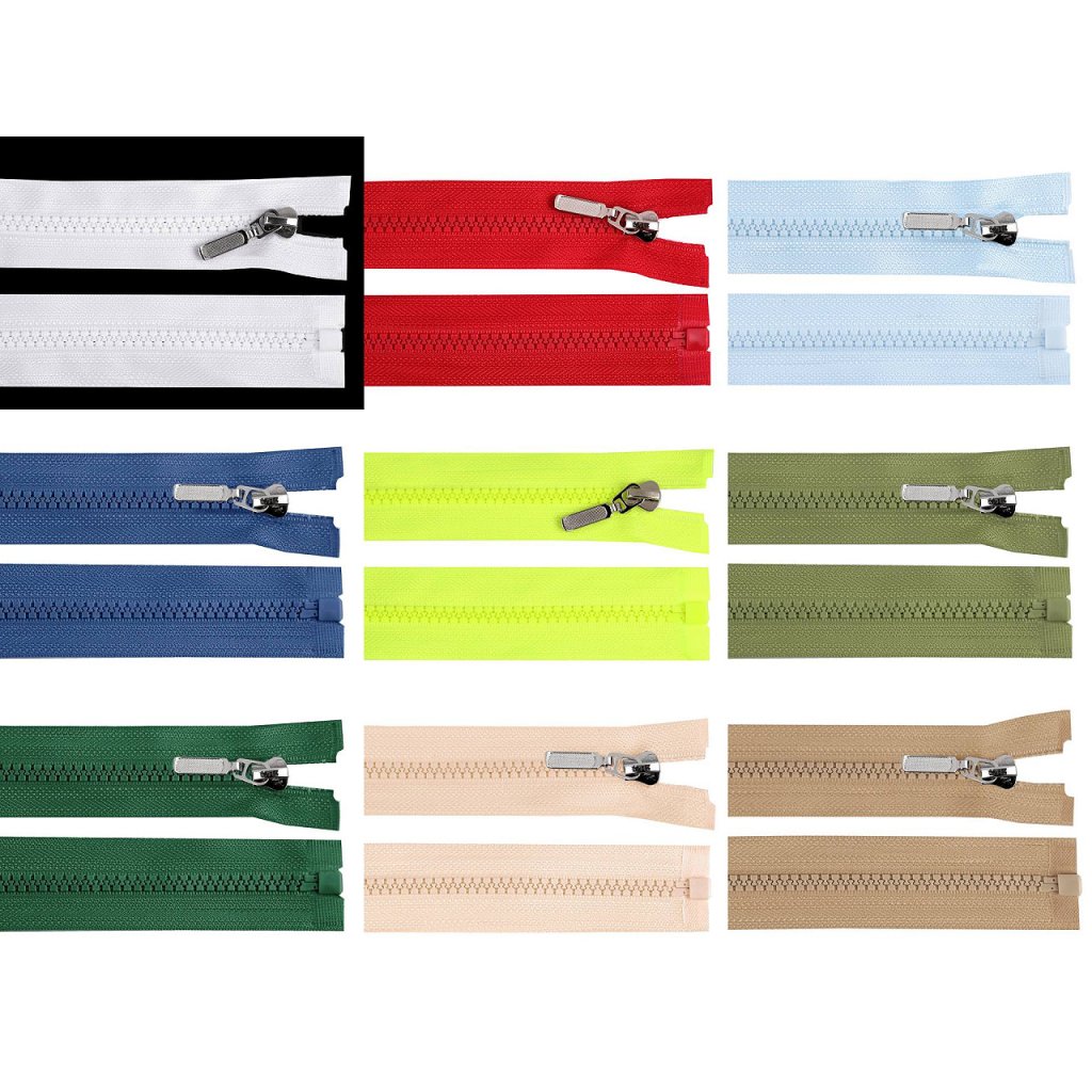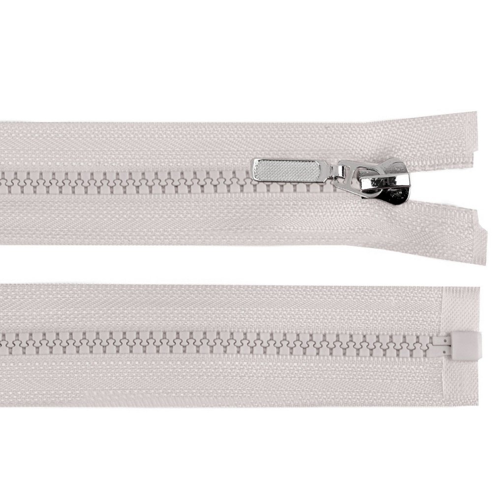 Kostěný zip s kovovým jezdcem je vhodný k našití na bundy nebo kabáty.