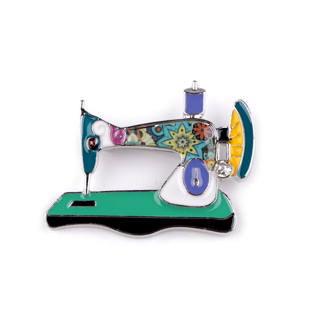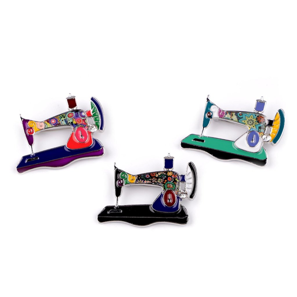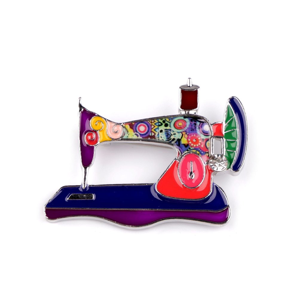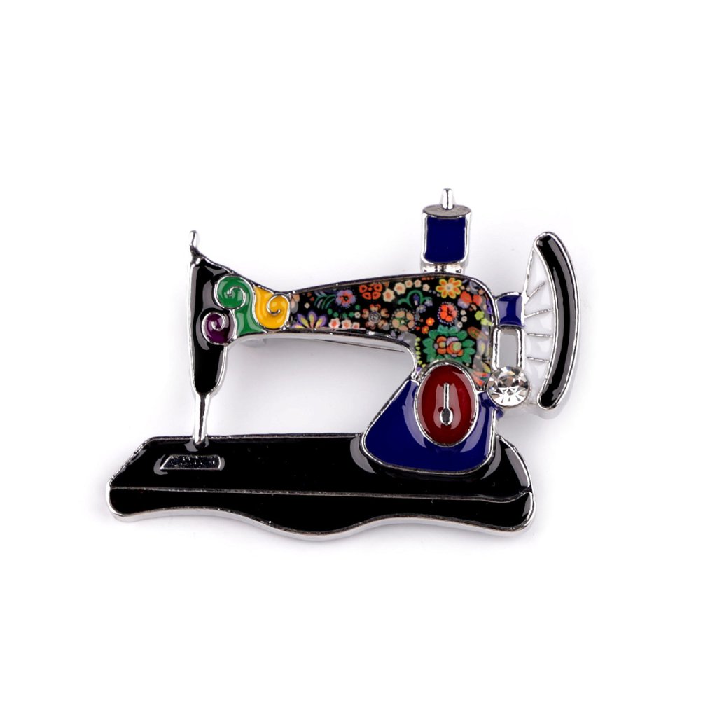 Smaltovaná brož šicího stroje bude skvělým dárkem nejen pro švadlenku. Ocení ji všechny kreativní ženy, které milují barvy. Je ozdobená broušeným kamínkem. Z rubu má brožový špendlík. Můžete ji nosit nejen na oděvech, hodí se i k ozdobení klobouků, tašky či sepnutí šátku.