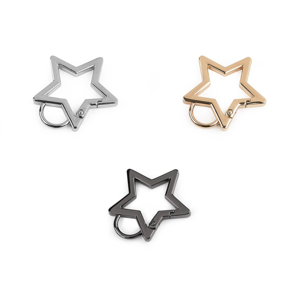 Designová kovová karabina hvězda vynikne na kabelkách, městských batozích, ale i jako elegantní klíčenka.