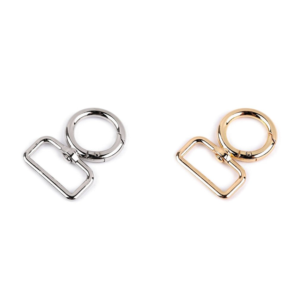 Designová kovová karabina je otočná. Vynikne na kabelkách, městských batozích, ale můžete ji použít i jako elegantní klíčenku.
