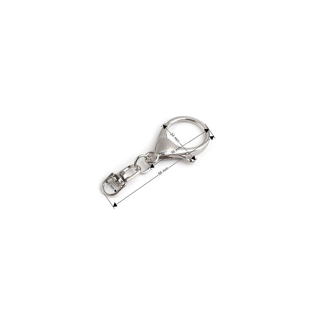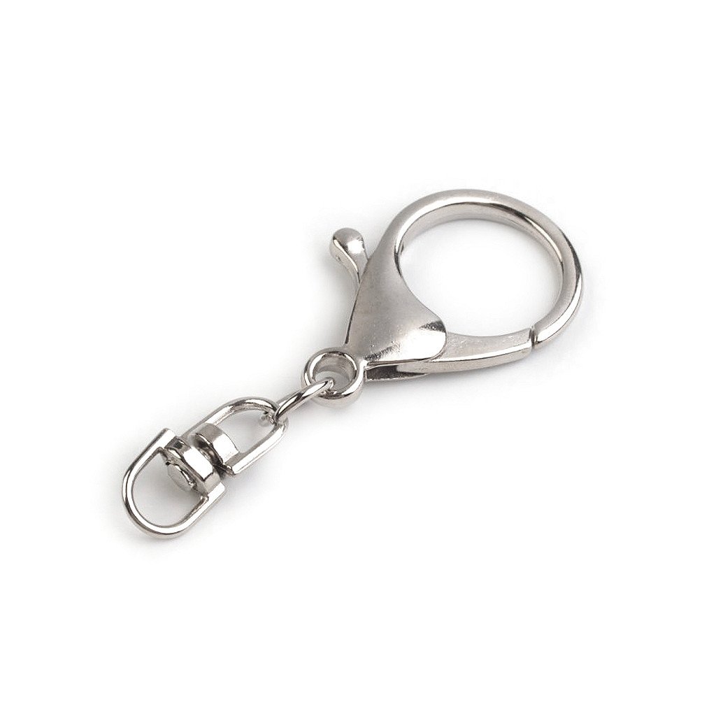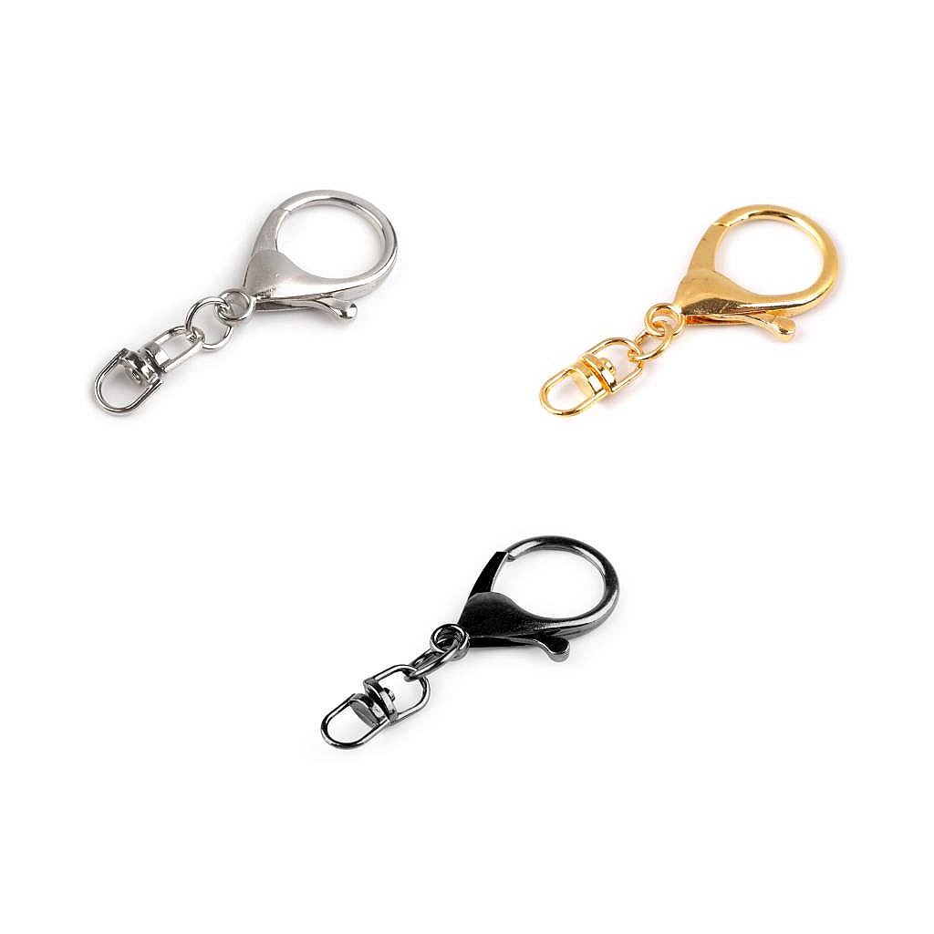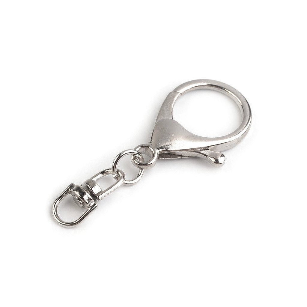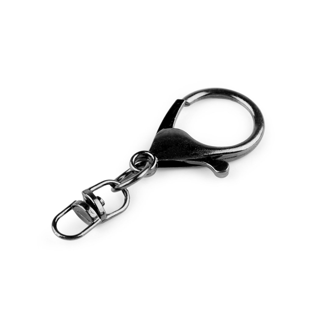 Kovová karabinka je připevněná na otočném obrtlíku. Využijete ji k výrobě klíčenek či různých přívěsků na tašky, kabelky, batohy apod.
