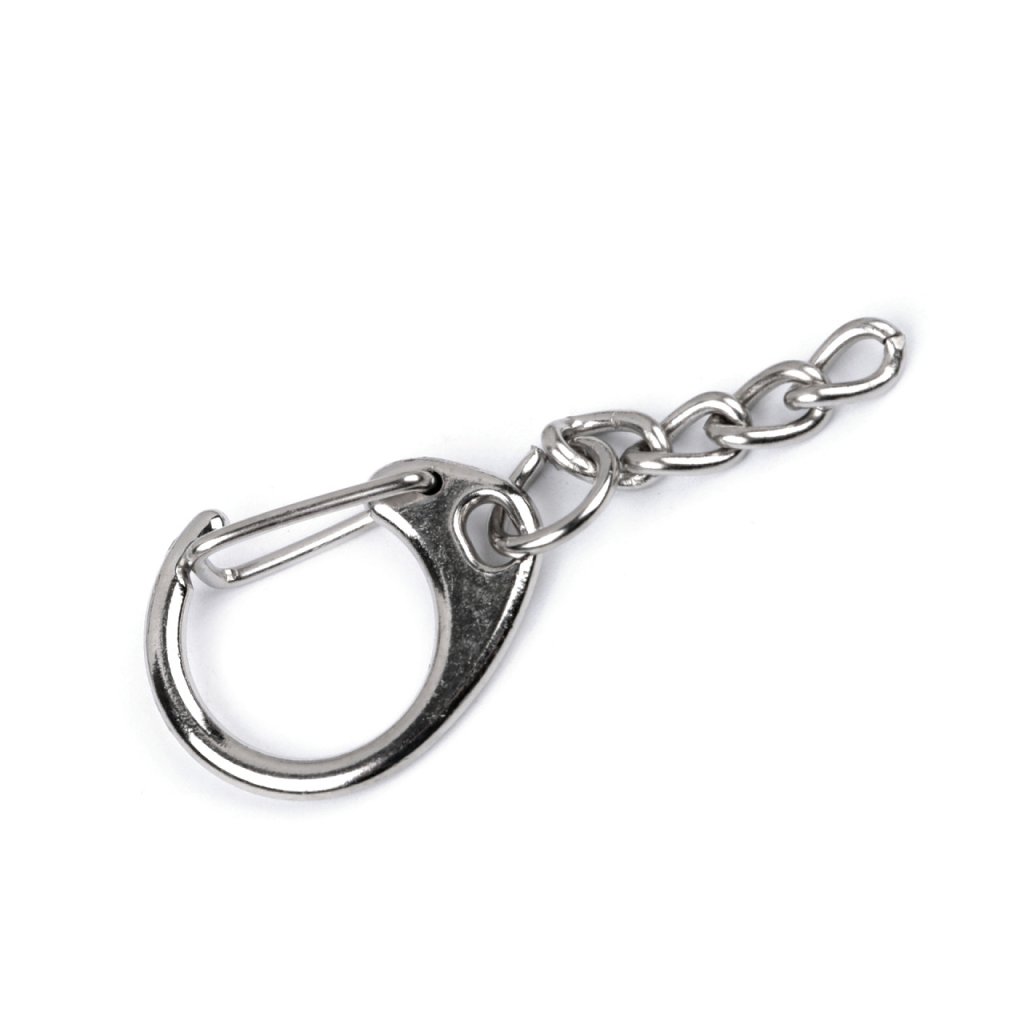 Kovová karabinka je vhodná na menší přívěsky a kabelky a na výrobu klíčenek. Není otočná.
