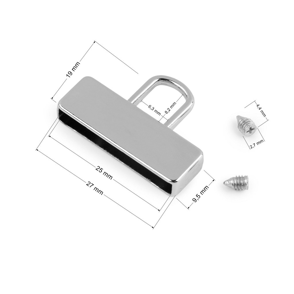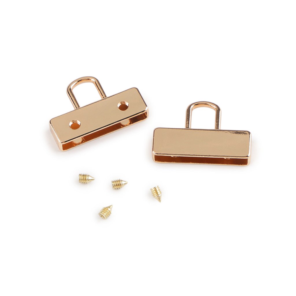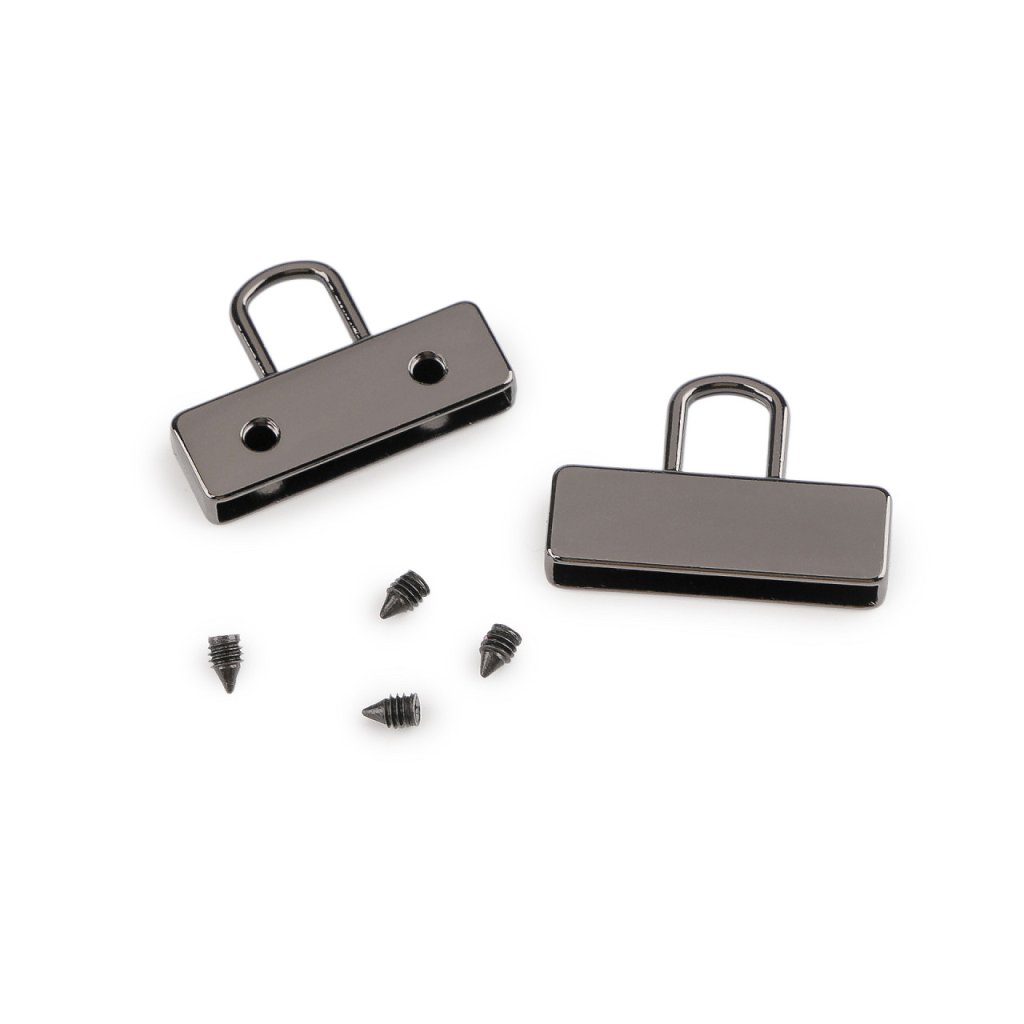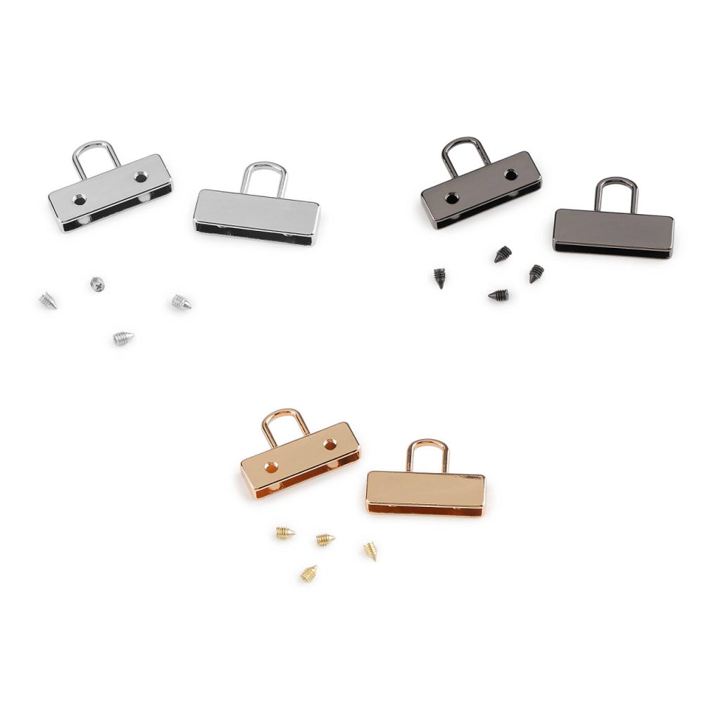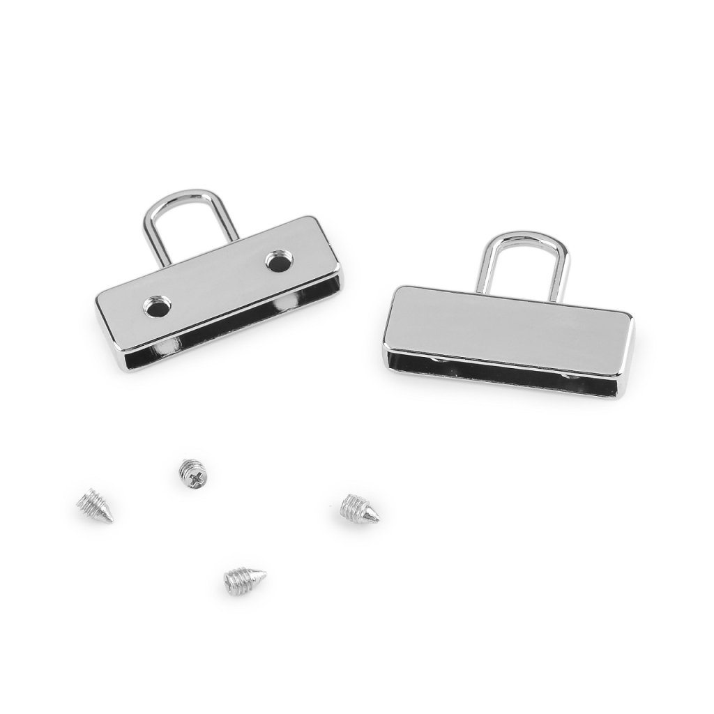 Koncovka na popruhy má vysoký lesk. Přilepíte do ní konec popruhu či jiného materiálu (s tloušťkou do 3 mm), který následně uchytíte přiloženými šroubky.