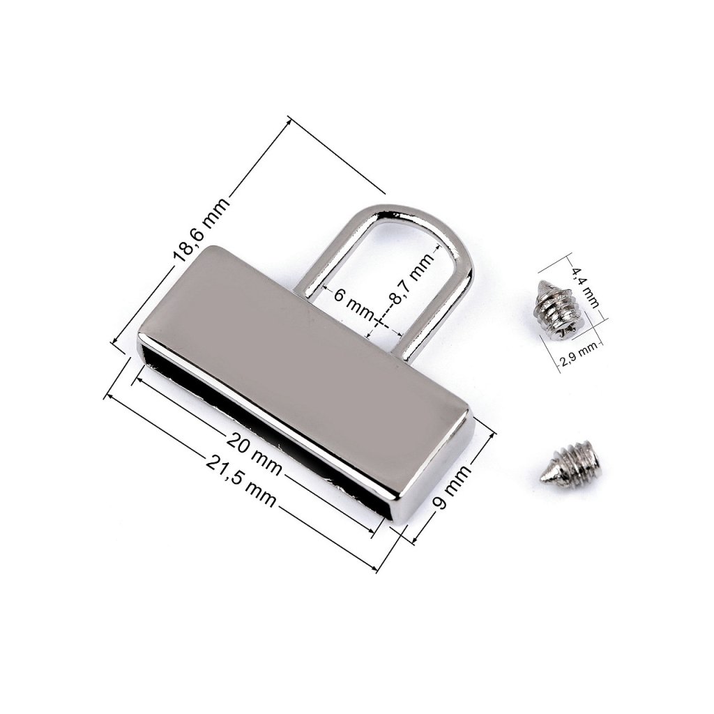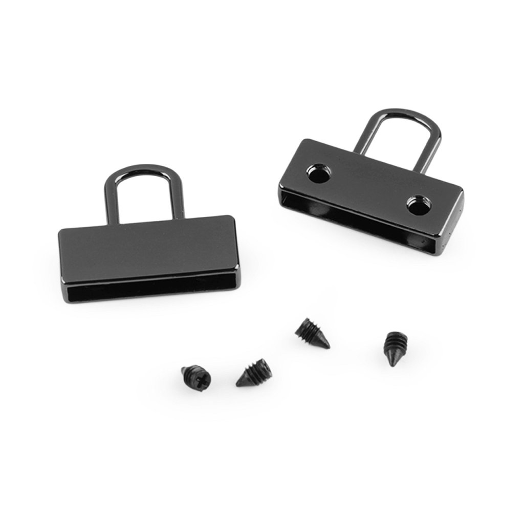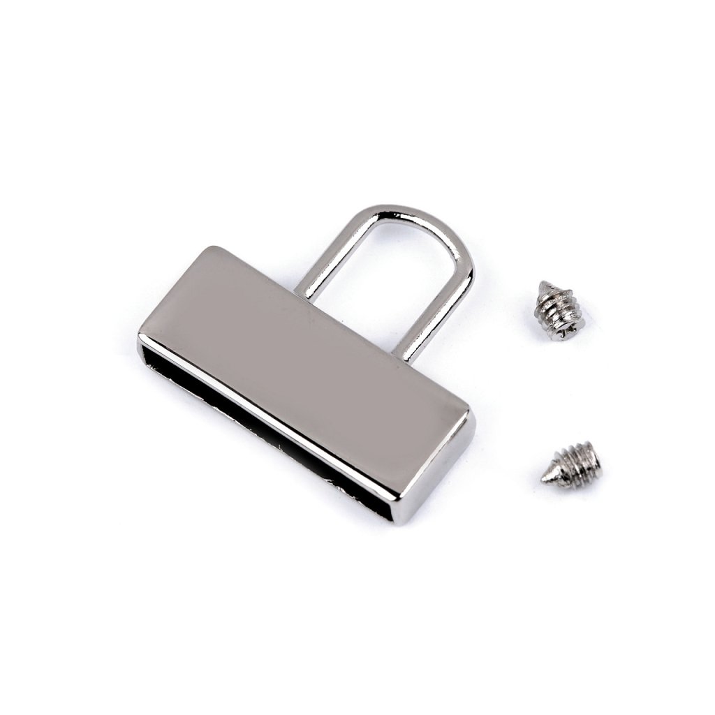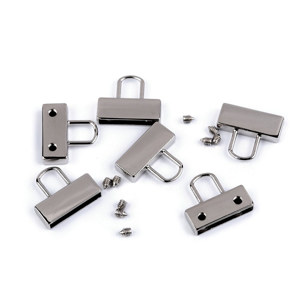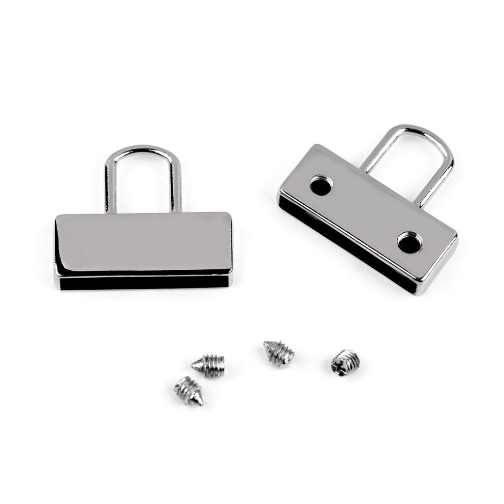 Koncovka na popruhy má vysoký lesk. Přilepíte do ní konec popruhu či jiného materiálu (s tloušťkou do 3 mm), který následně uchytíte přiloženými šroubky.