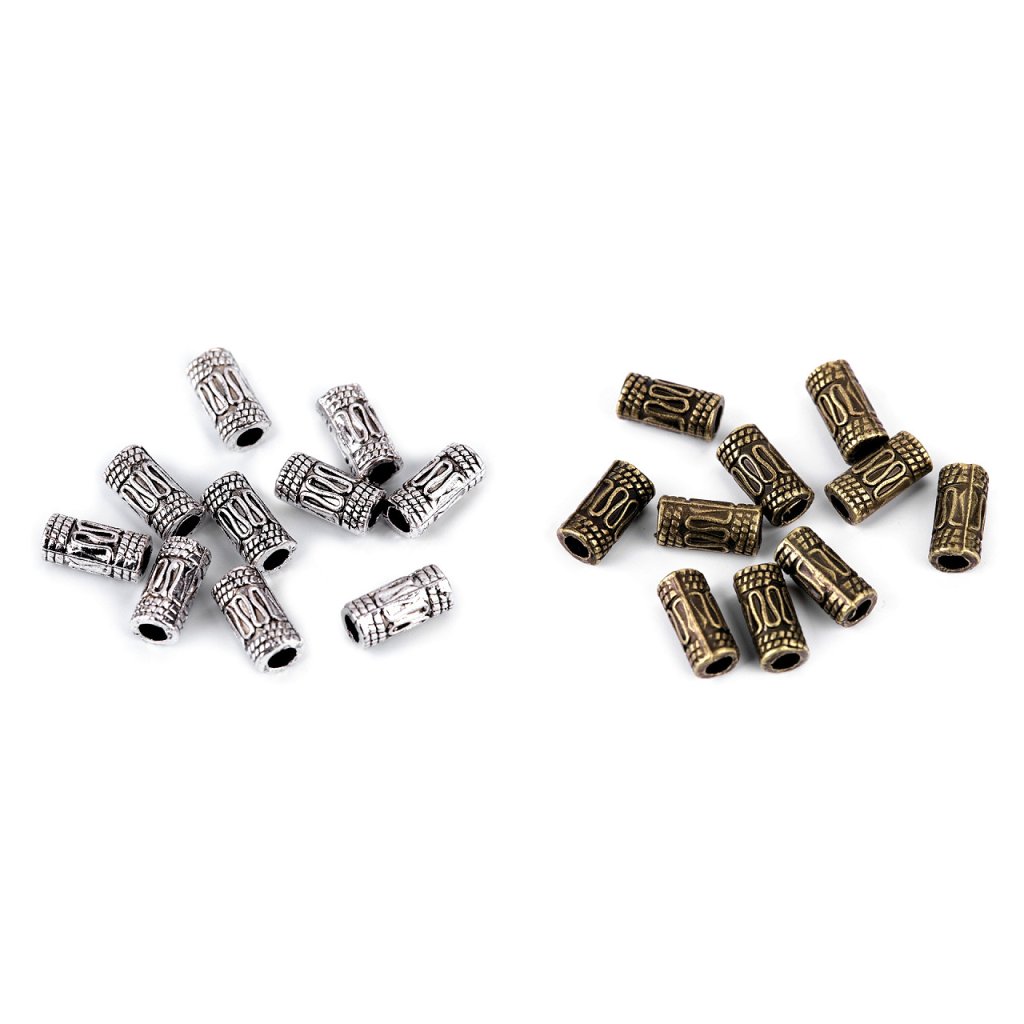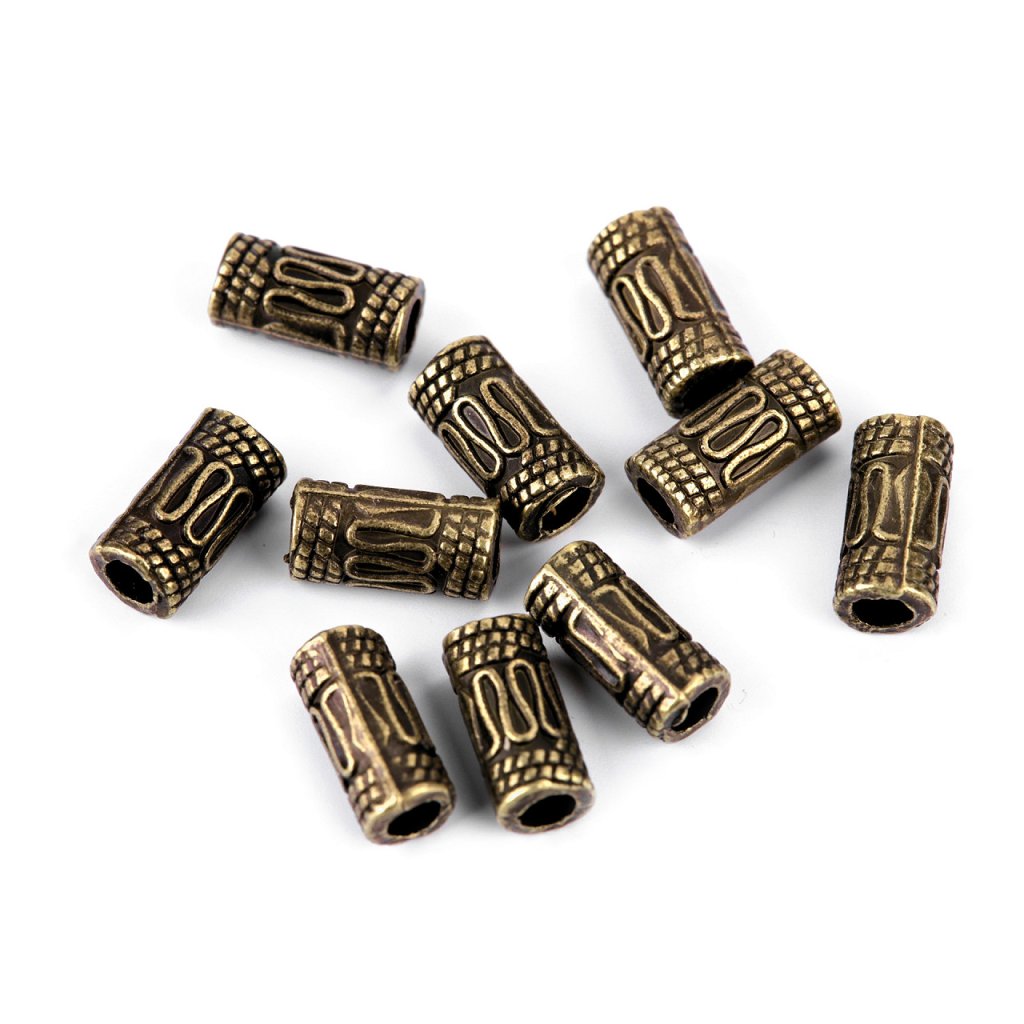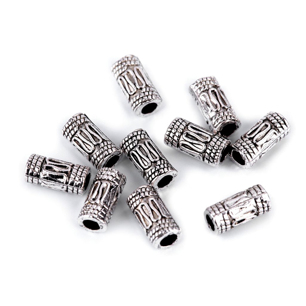 Kovový váleček zdobený ornamenty má široké možnosti využití. Je vhodný jako koncovka na oděvní šňůrky.
